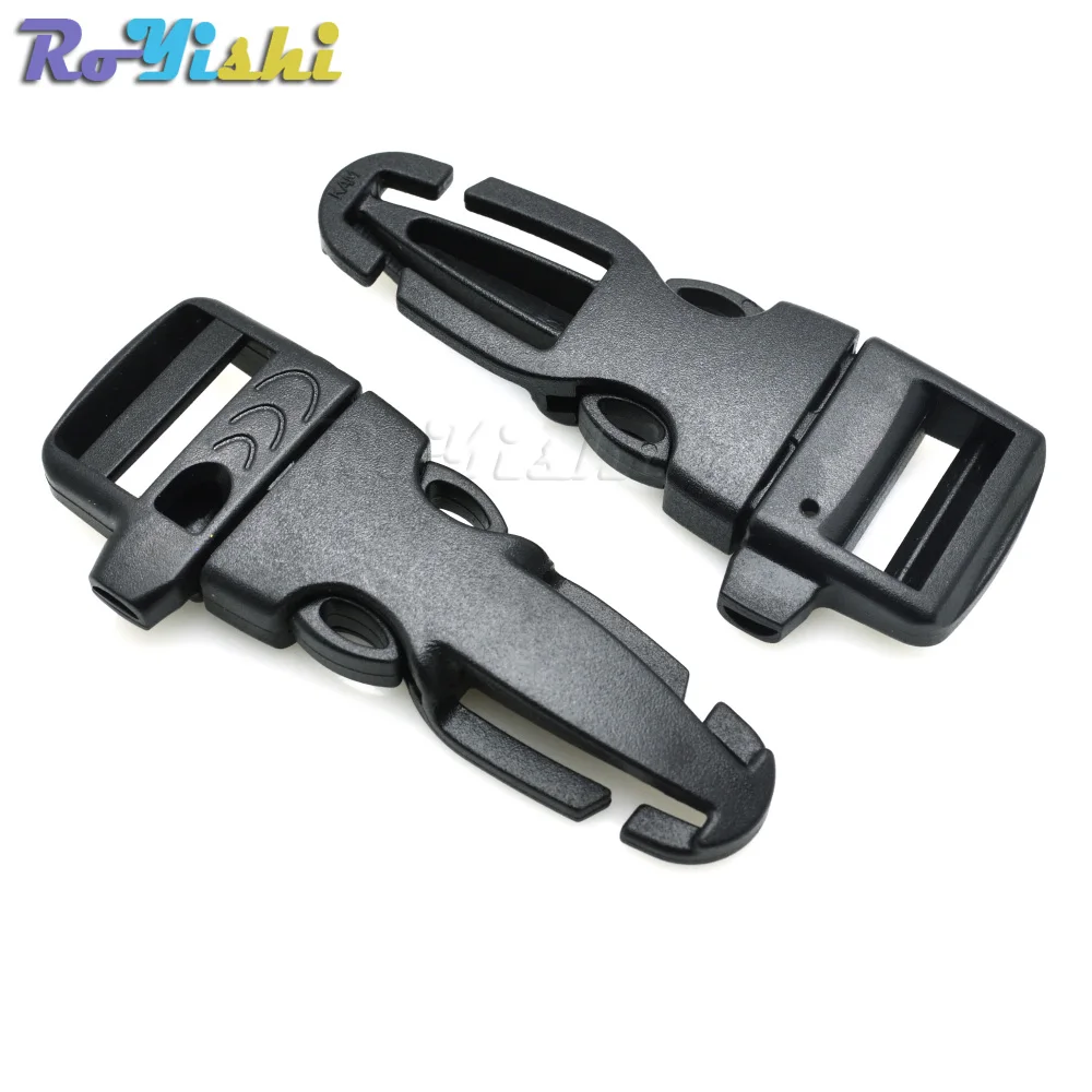 Hebillas de silbato de supervivencia de emergencia para exteriores, hebillas de liberación lateral de plástico, piezas de bolsa para mochila de campamento, 3/4 "(20mm)