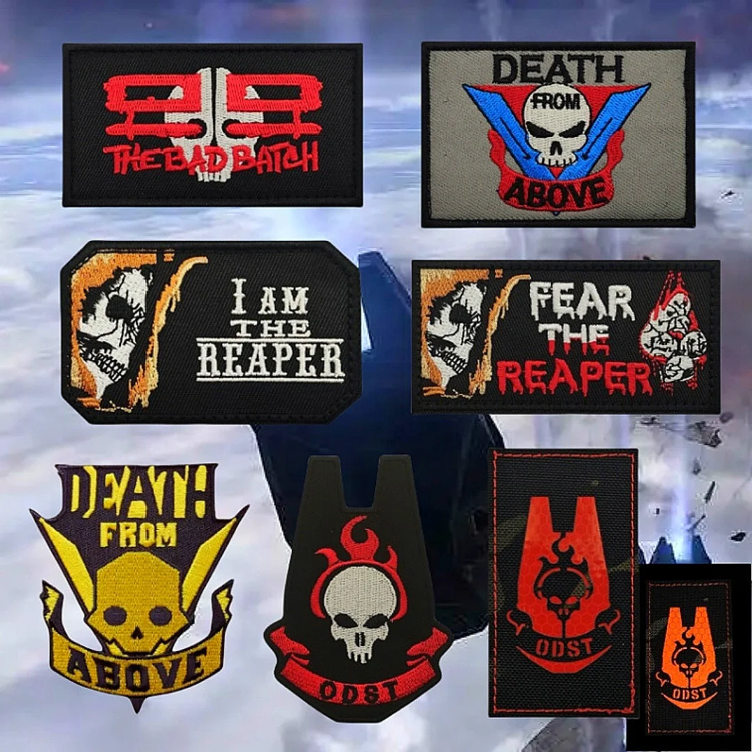 Hello Odst parches bordados periféricos de juego FEAR THE REAPER, insignia de moral, brazalete táctico, parches Klett, pegatina para mochila