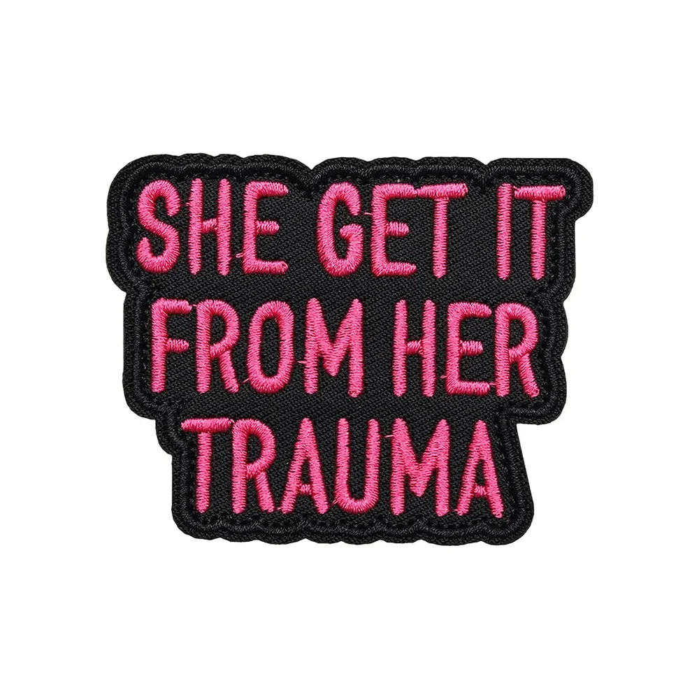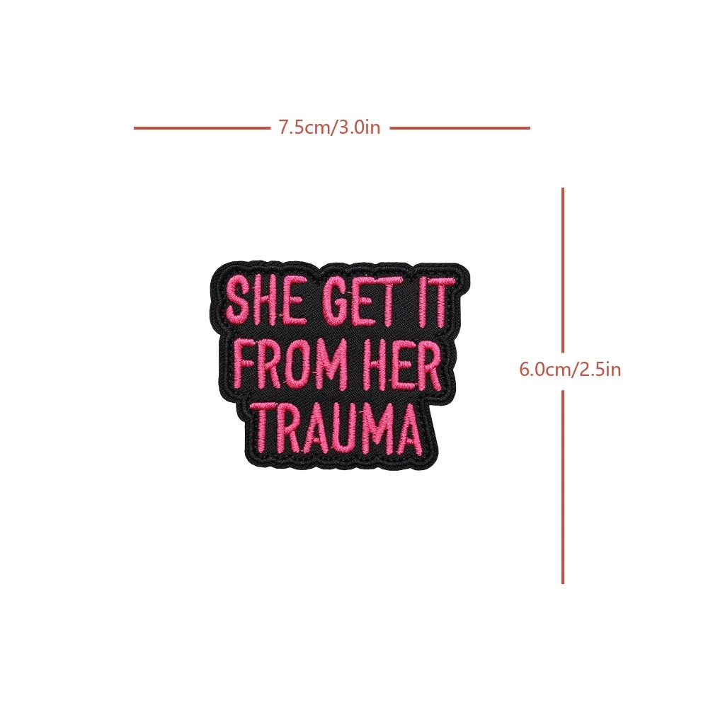 HER TRAUMA Meme citas moral parche divertido Velcros táctico gancho bucle sujetador bordado insignia para Jeans Molle mochila gorra