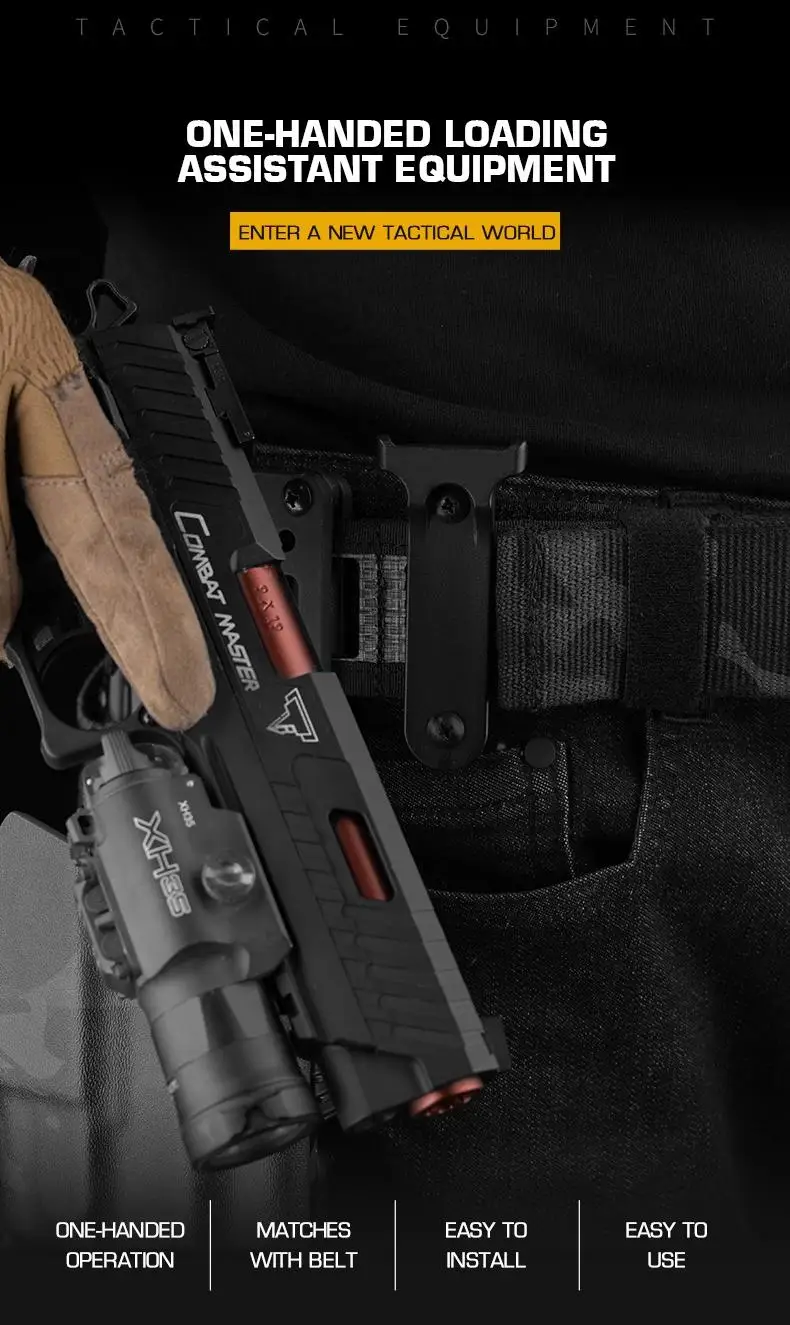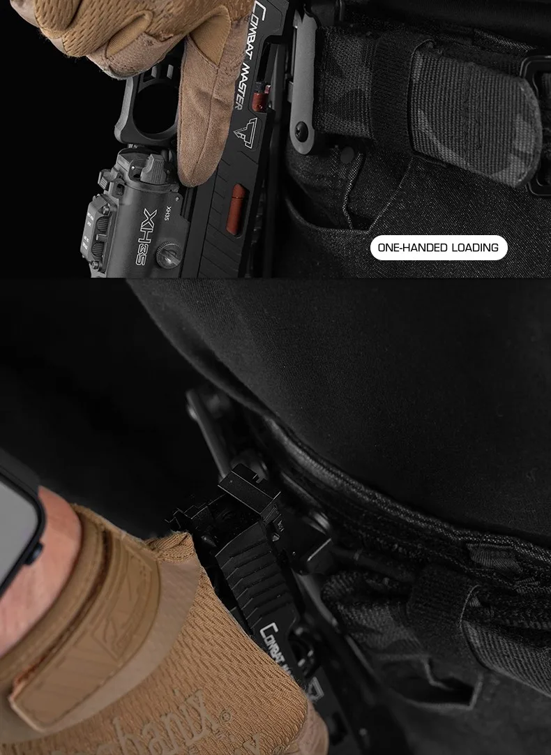 ① El racker está diseñado para la manipulación de pistola con una sola mano, lo que permite al tirador operar una pistola semiautomática con una sola mano.