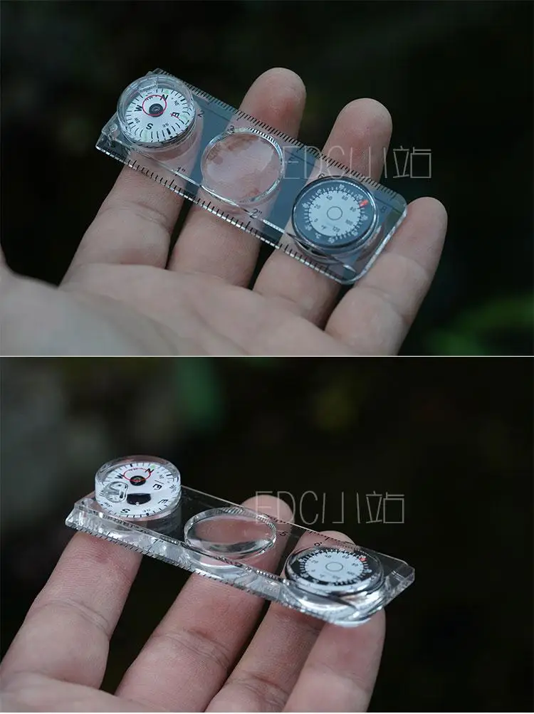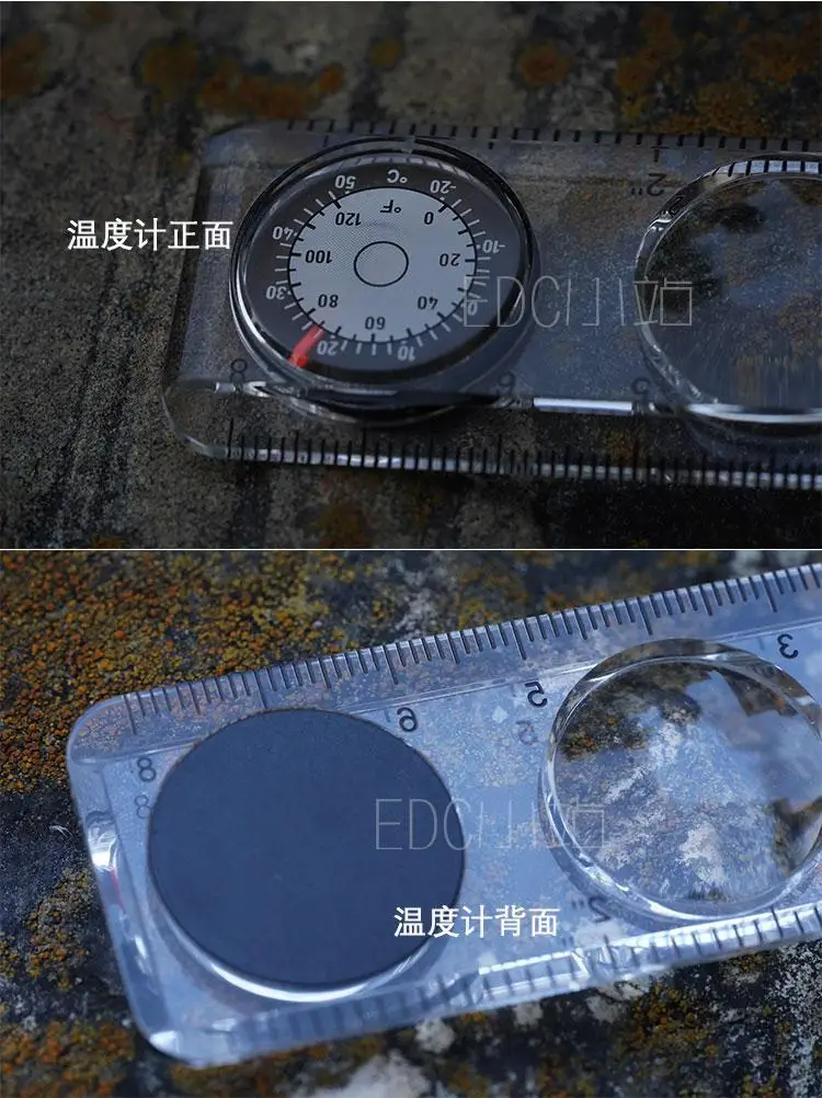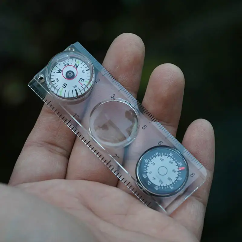 Regla de herramientas multifuncional con/lupa/termómetro/brújula