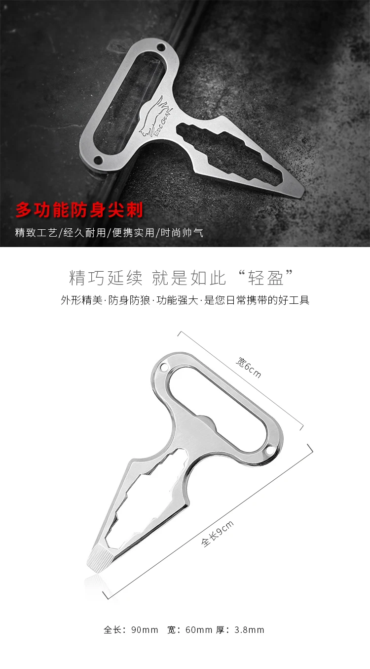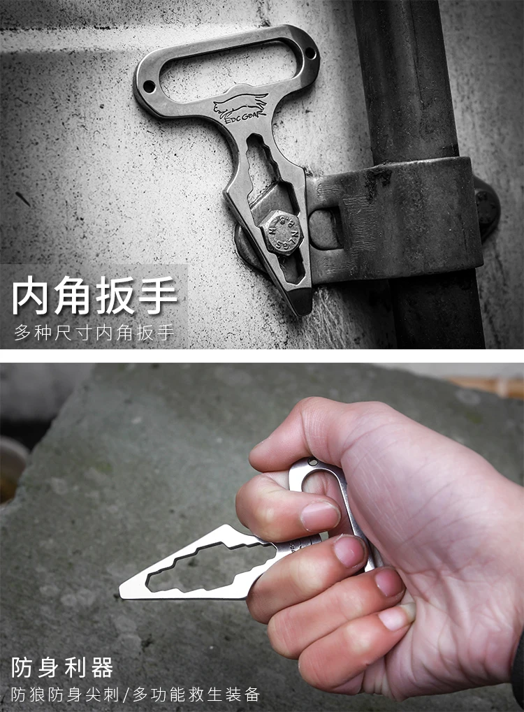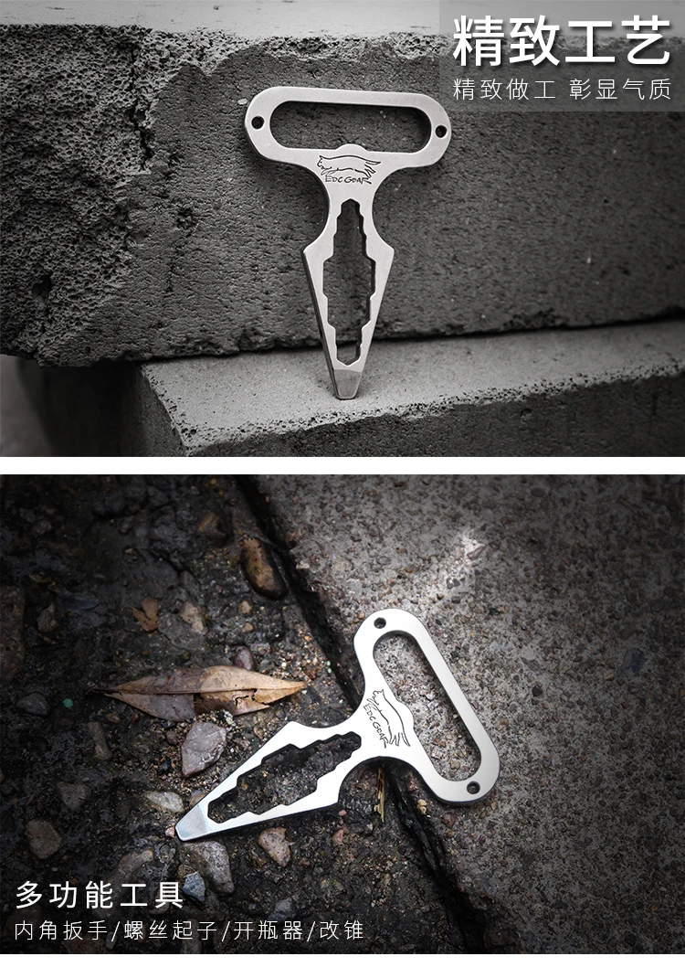 Herramienta EDC colgante de llave de tornillo de llave de ángulo interior multifuncional de autodefensa para hombres y mujeres al aire libre
