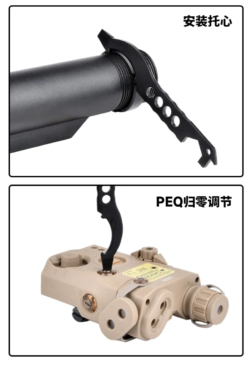 Herramienta de limpieza de pernos, llave hexagonal táctica PEQ, llave de montaje de metal ajustable, mini herramienta de llavero de aluminio