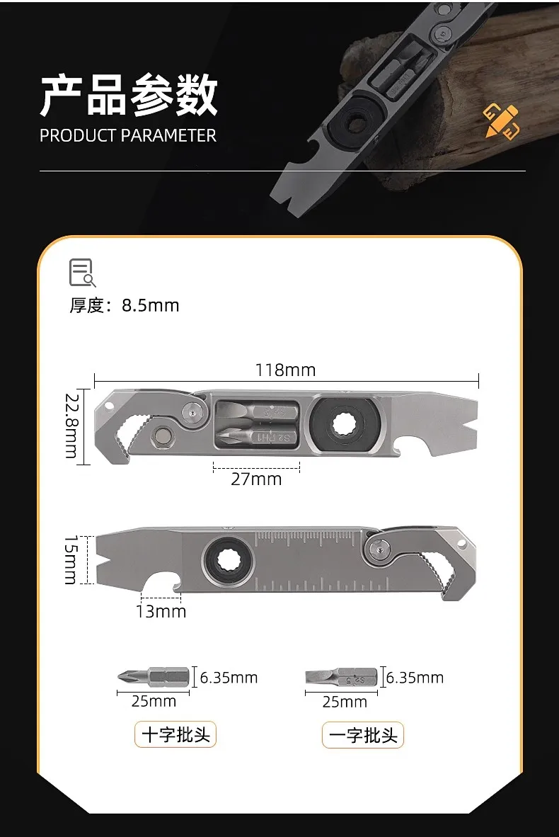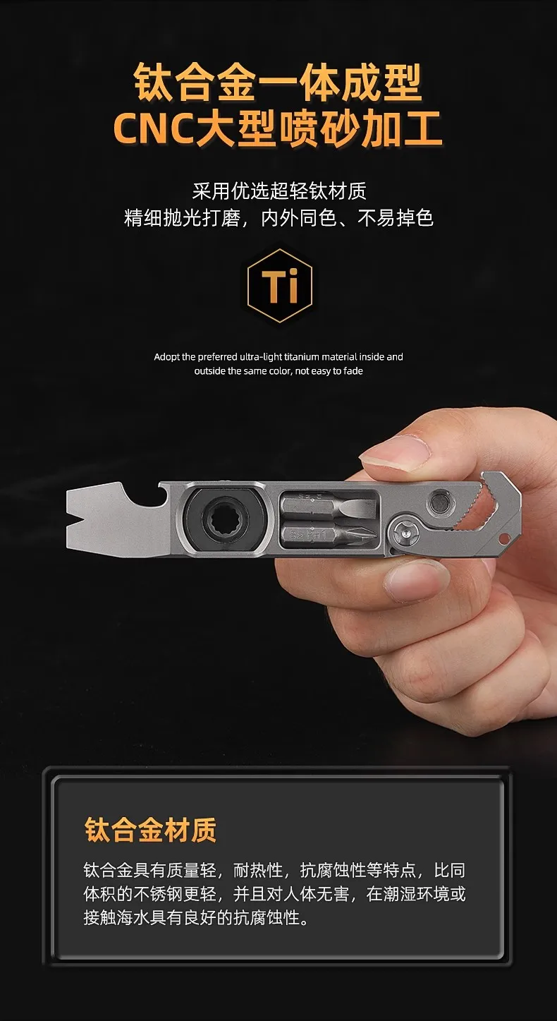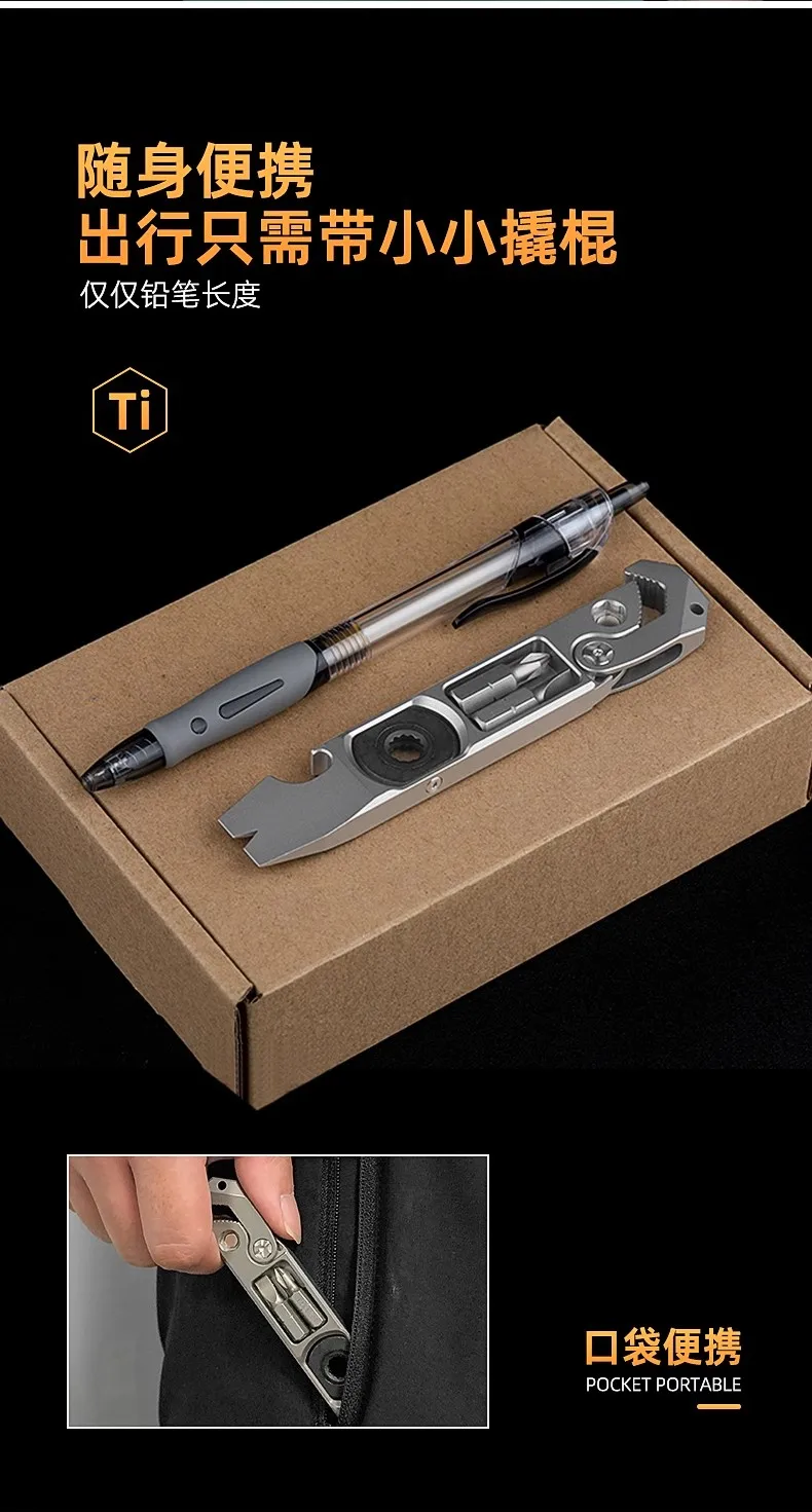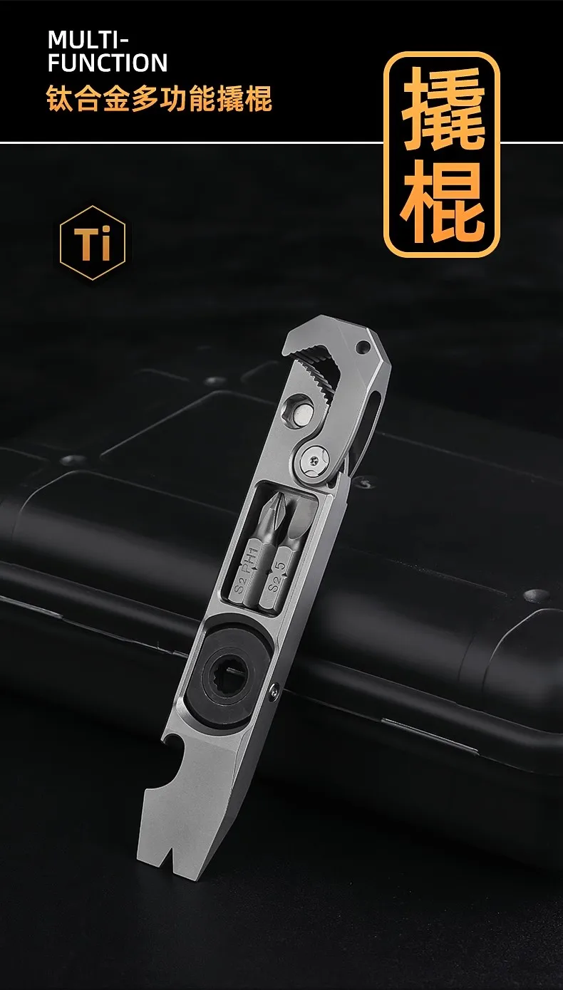 Herramienta multifunción de aleación de titanio TC4, destornillador, Abrebotellas de palanca con supervivencia al aire libre Edc