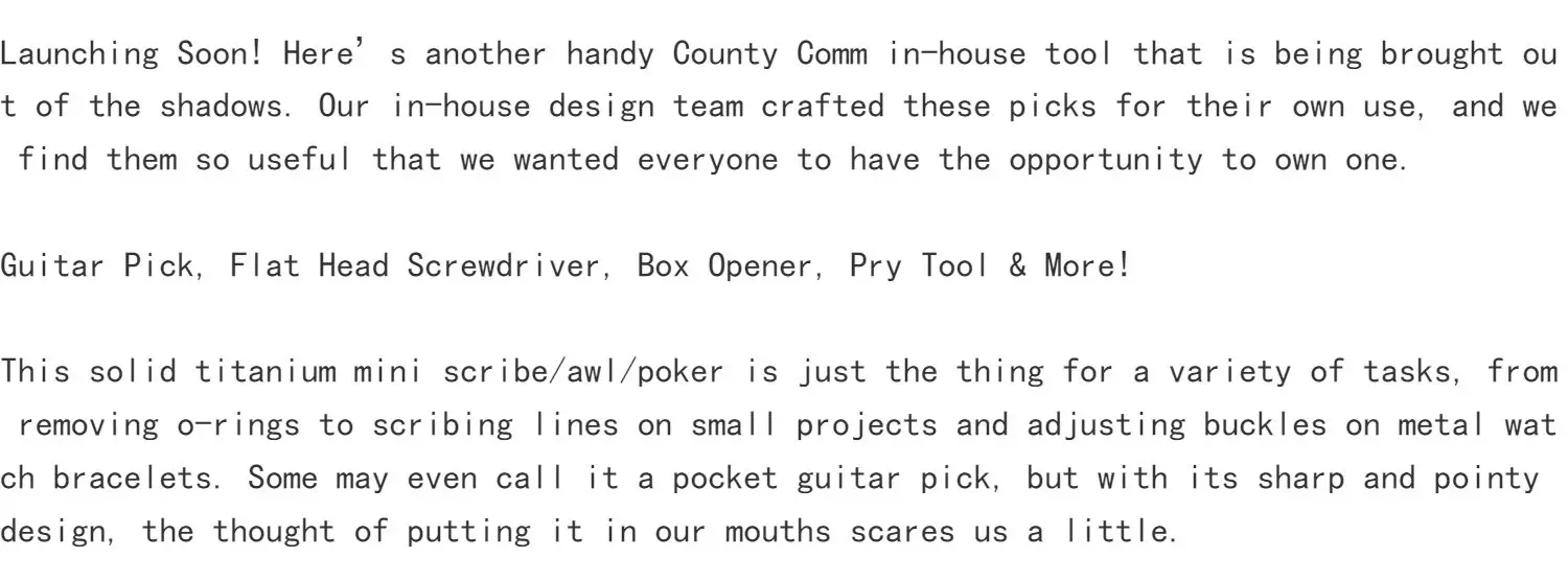 ¡Se puede utilizar como púa de guitarra, destornillador de cabeza plana, abridor de caja, herramienta de palanca y más!Este resistente mini marcador/vatla/pequeño colgador de titanio es perfecto para una variedad de tareas, desde quitar anillos hasta marcar en proyectos pequeños hasta ajustar la hebilla de una cadena de reloj de metal.Algunos pueden incluso llamarle una plúa de guitarra de bolsillo, pero con su diseño nítido y tamaño pequeño, fue bienvenido tan pronto como se lanzó.