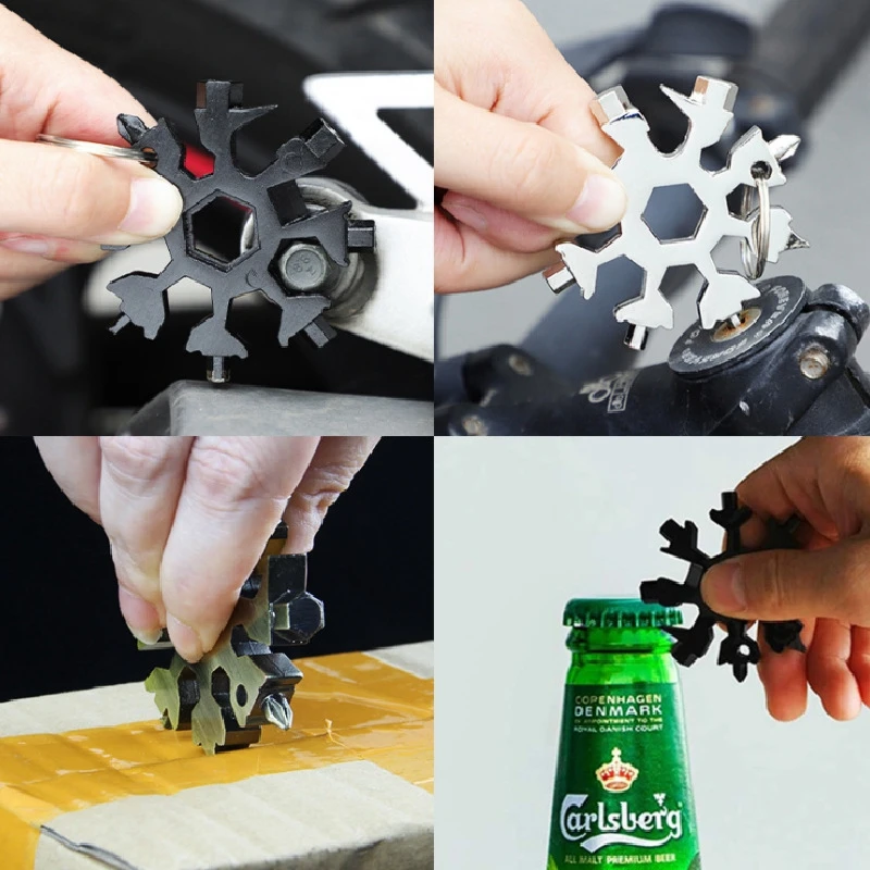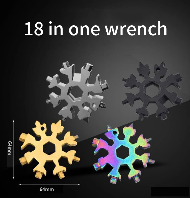Herramienta multiherramienta De copos De nieve De acero inoxidable 18 en 1 herramienta multifuncional Copo De Nieve Llave Multiusos