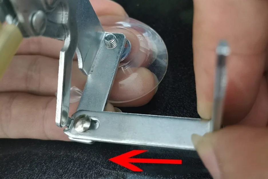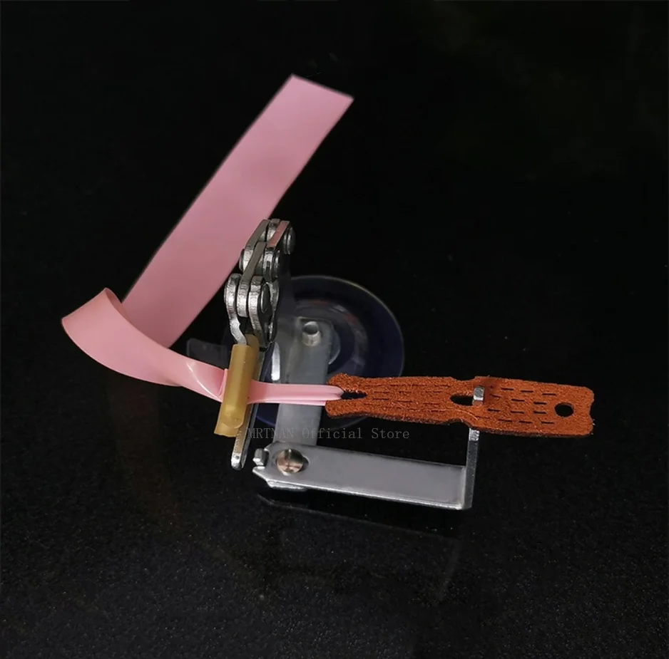 4. Tire de la banda de goma para fijar el bolsillo de cuero en el ala lateral