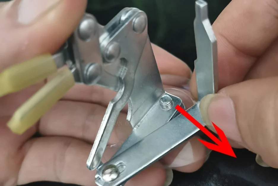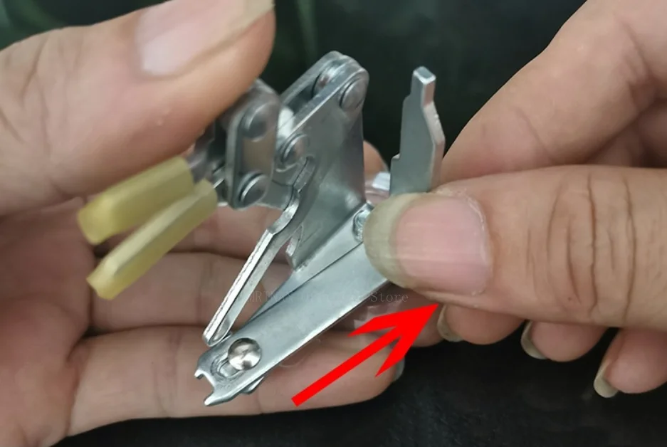 3. Empuje con fuerza la llave inglesa que bloquea la banda elástica