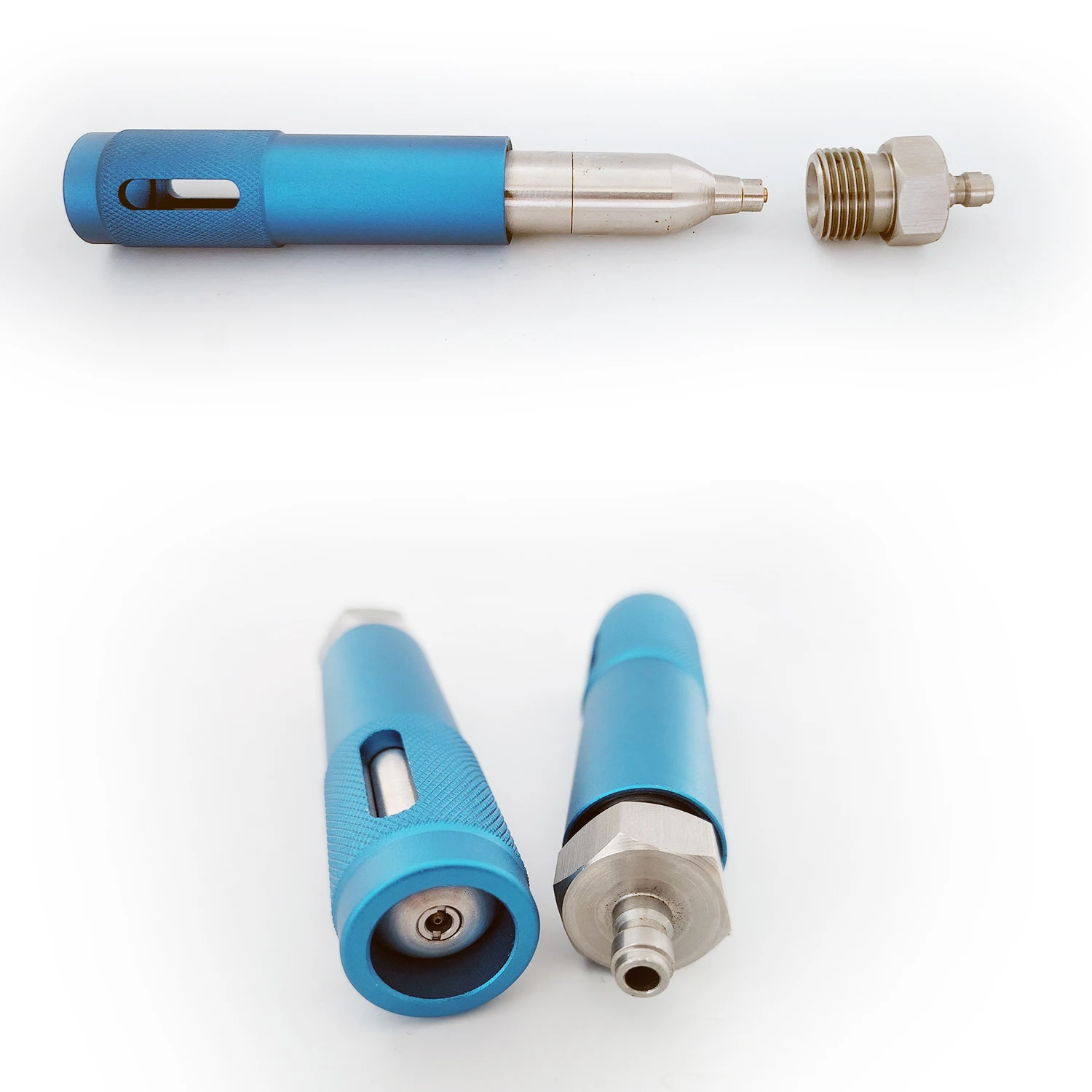 Multifuncional y fácil de rellenar: este adaptador de inflado patentado está diseñado específicamente para inflar cilindros de gas sin rosca de 12 g.Es sencillo de operar.Solo necesita utilizar una bomba de inflado de alta presión para completar fácilmente el proceso de inflado rápidamente.Las bombonas de gas se pueden reciclar, lo que es un sustituto perfecto de las bombonas de gas desechables.