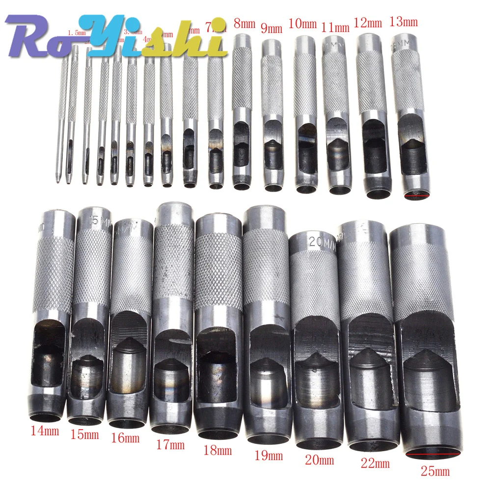 Herramientas para recoger cuero, 25 tamaños, perforadora de cuero, juego para manualidades con agujeros, perforadora hueca, punzón para cinturón de 1,0mm-25mm para ropa y lona