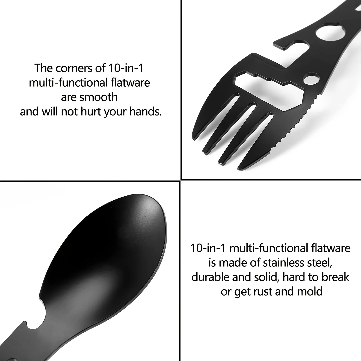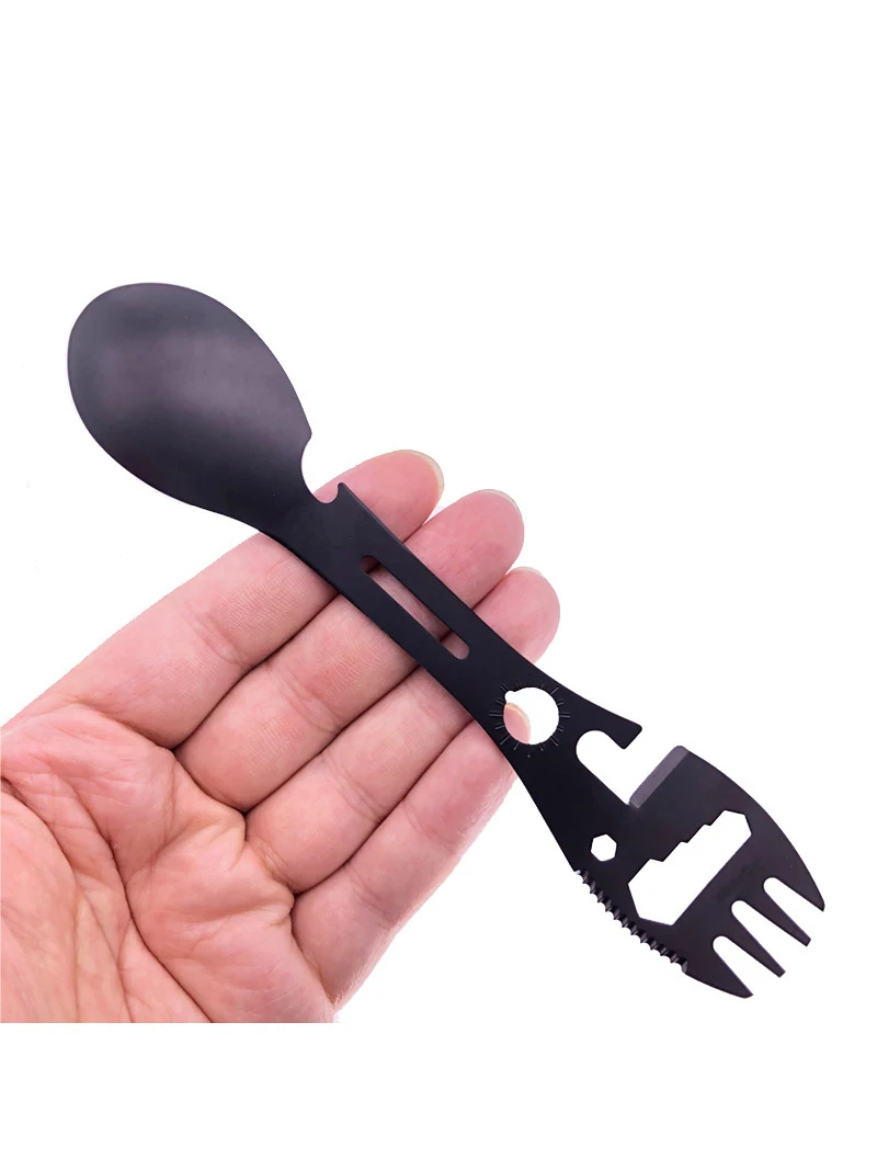 Herramientas de supervivencia al aire libre 5 en 1, Kit EDC multifuncional para acampar, práctico tenedor, cuchillo, cuchara, abridor de botellas, equipo para acampar y hacer senderismo