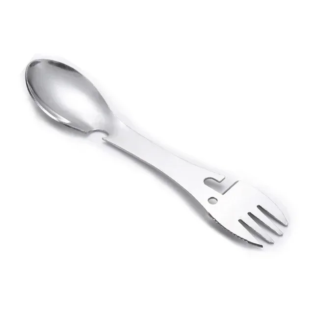 2.Multifuncional, se puede utilizar como cuchara, tenedor, cuchillo (cuchillo para carne), abridor de botellas o abrelatas.