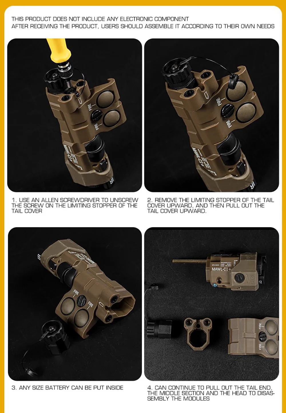 Herramientas tácticas para exteriores MAWL-C1 + caja de batería, montaje en riel Modular, caja de almacenamiento de batería CS Wargame Airsoft Paintball, engranajes de caza