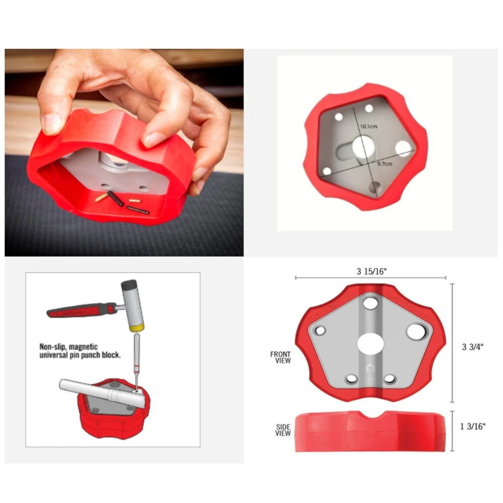 CAPTURA LOS PINES BAJO EL BLOQUEO: después de perforar los pasadores, el anillo exterior evita que los pasadores se deslicen.