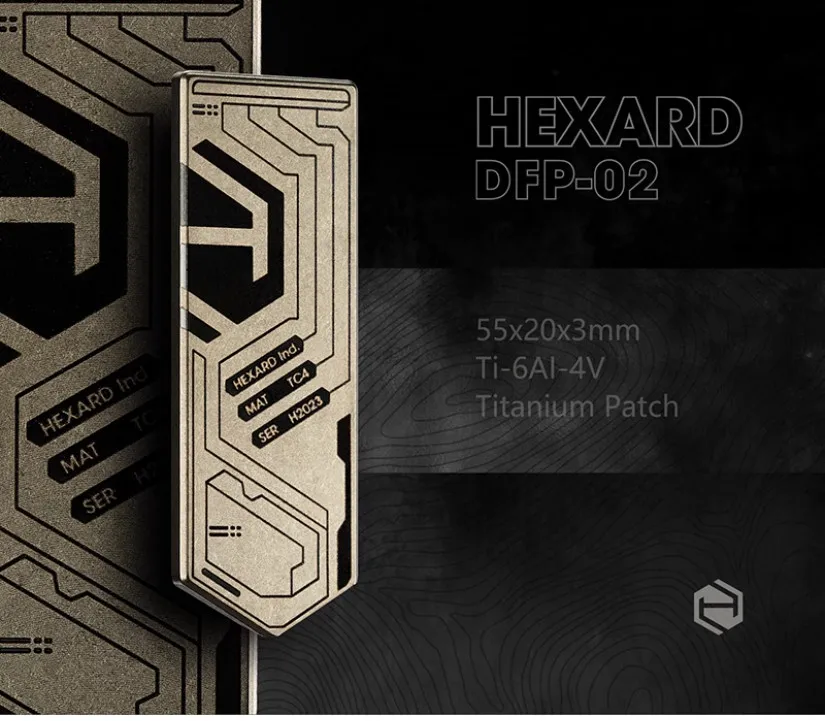 Hexard DFP-02 Parche de metal táctico TC4 aleación de titanio función EDC insignia con gancho para ropa mochila chaqueta decoración