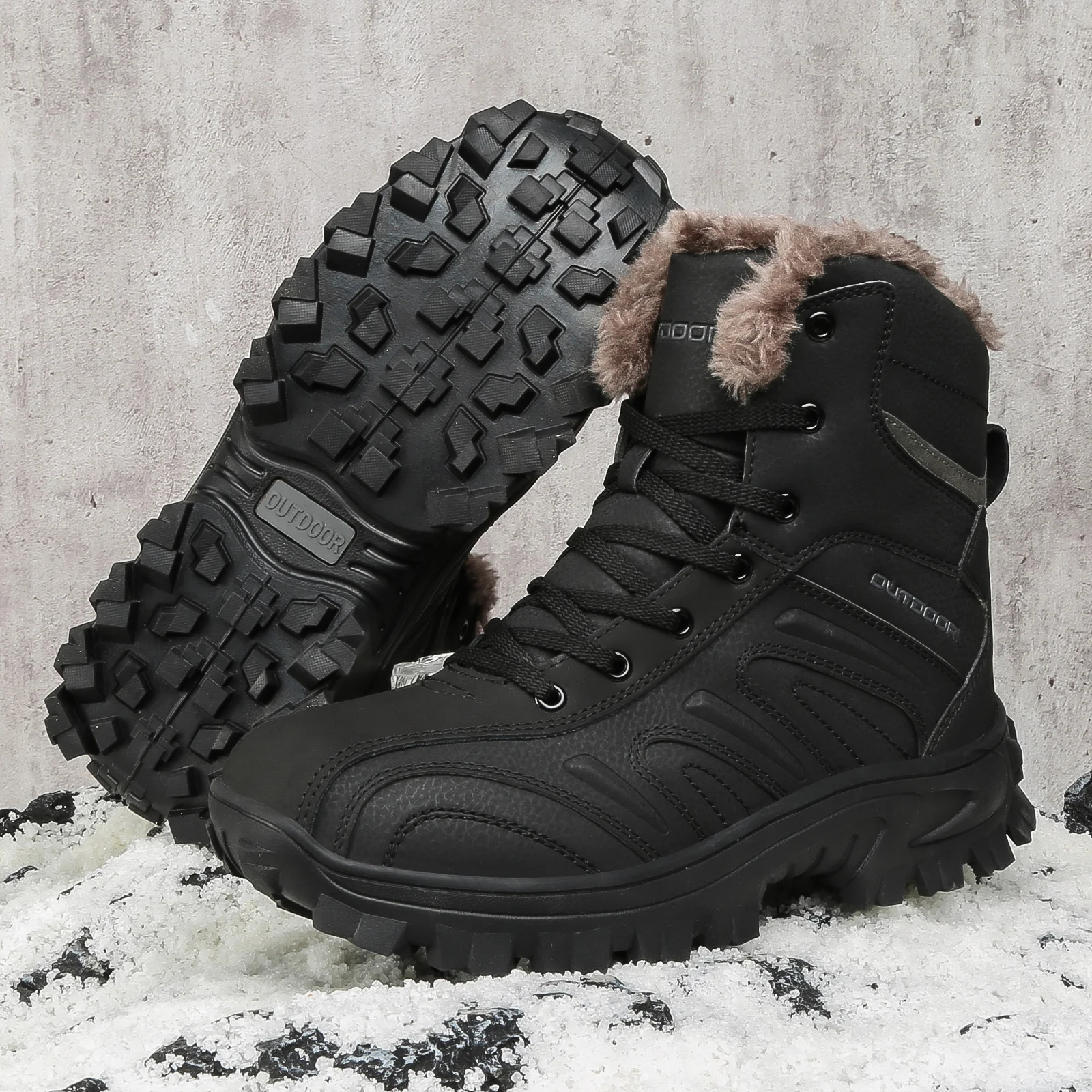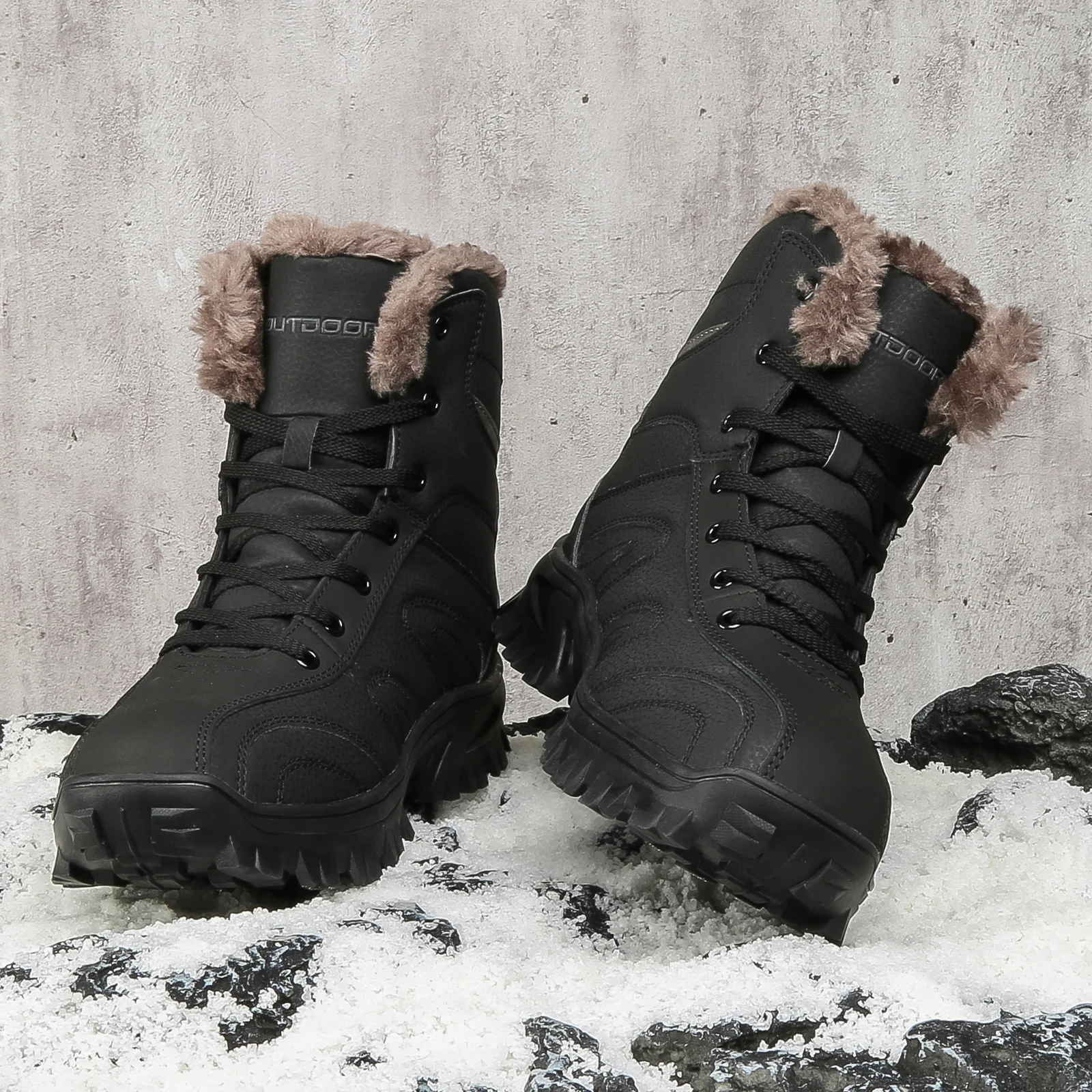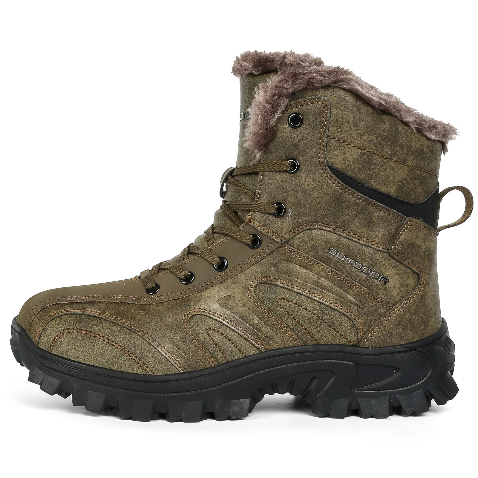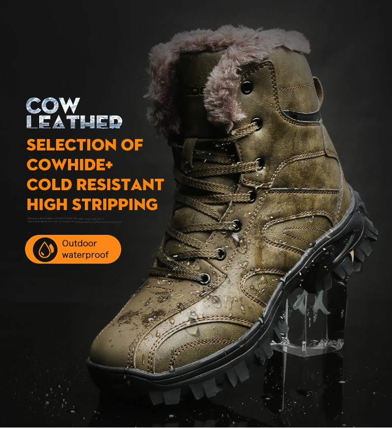 HIKEUP, botas de invierno para hombre, zapatos de algodón, zapatos tácticos militares de cuero genuino, zapatos de senderismo para caza del ejército para hombre, zapatos para exteriores de talla grande