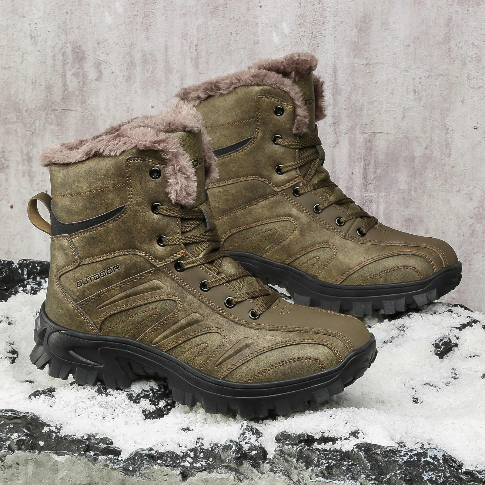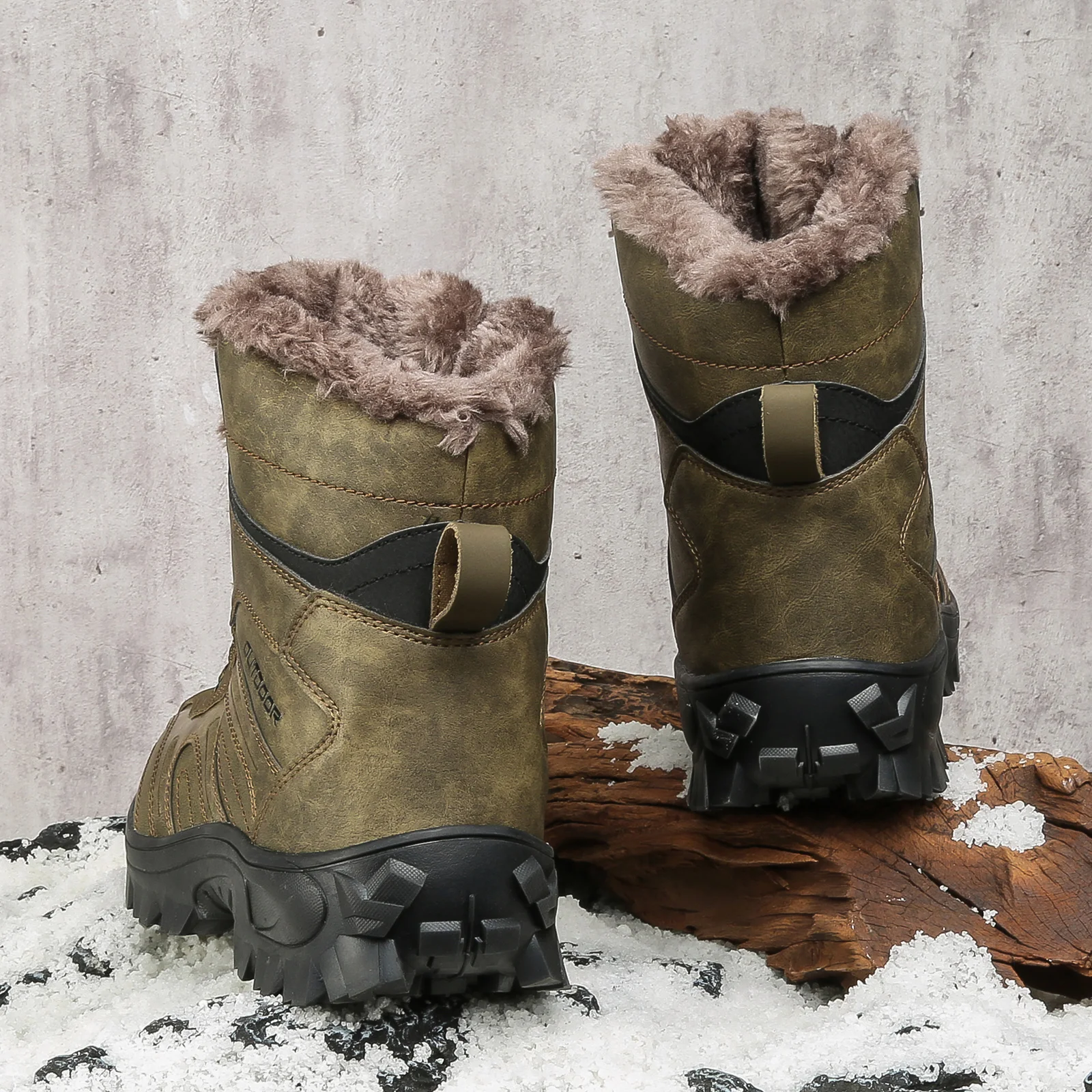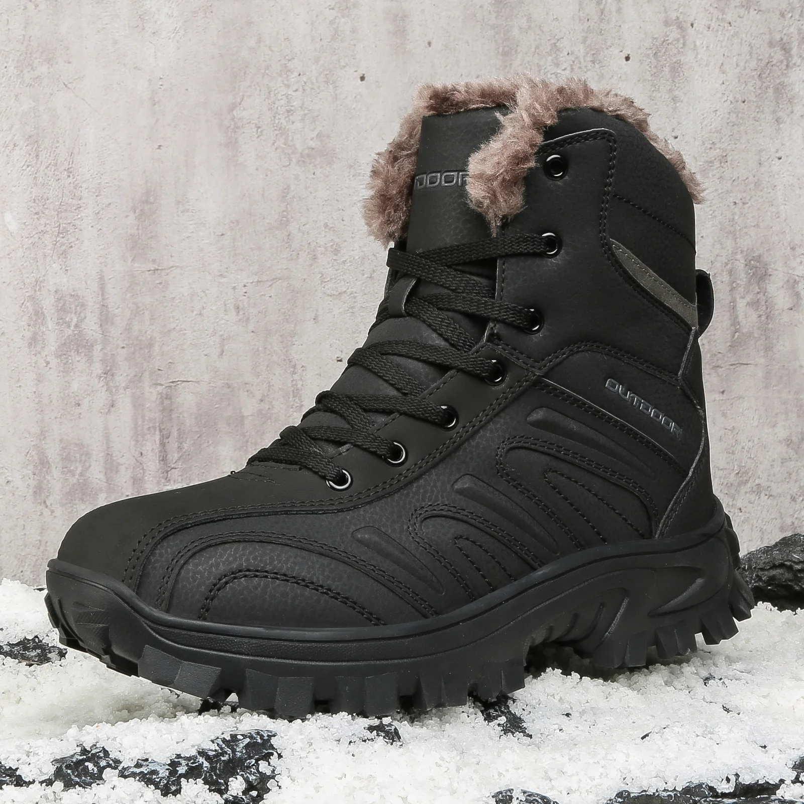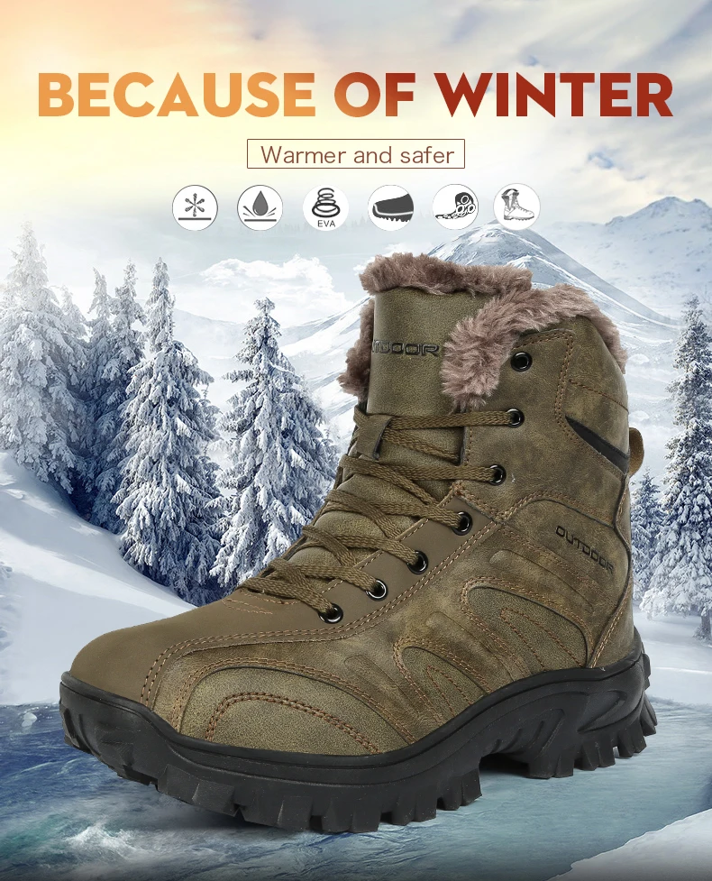 HIKEUP, botas de invierno para hombre, zapatos de algodón, zapatos tácticos militares de cuero genuino, zapatos de senderismo para caza del ejército para hombre, zapatos para exteriores de talla grande