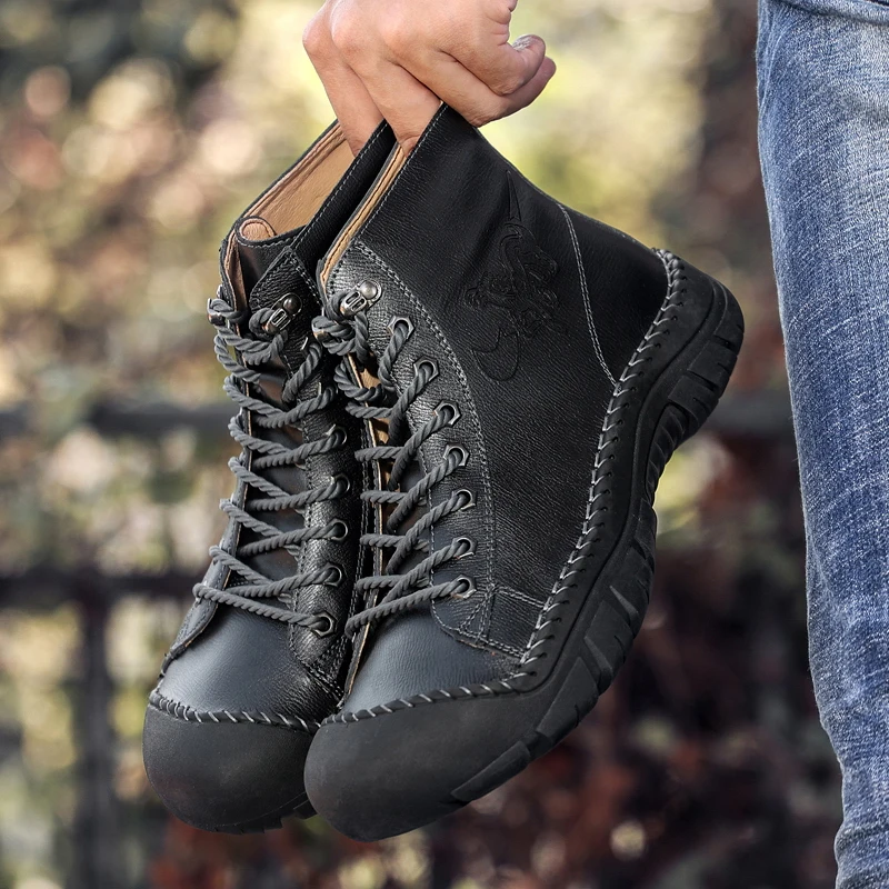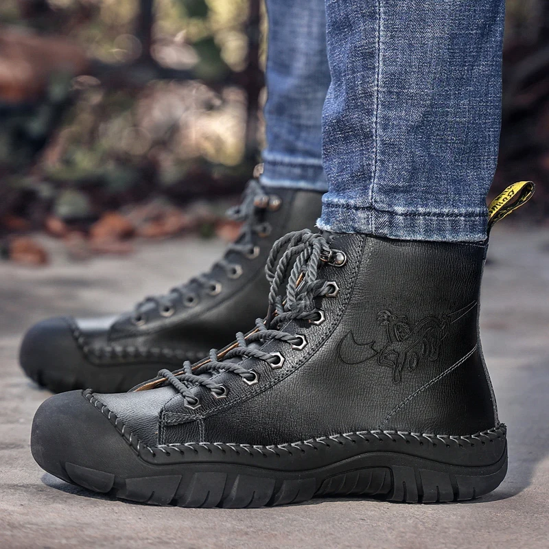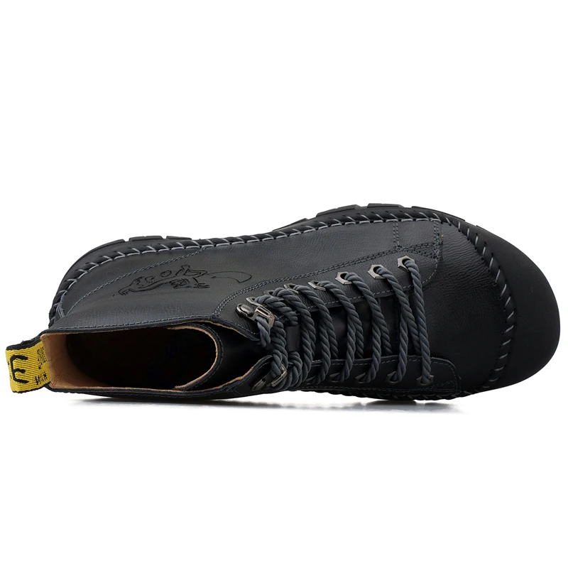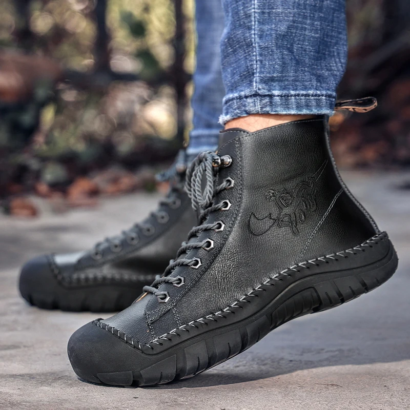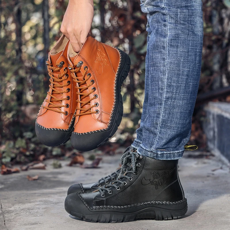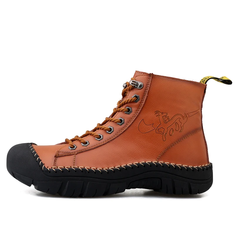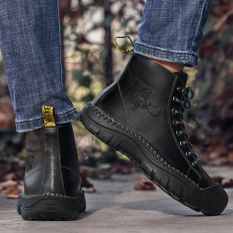 HIKEUP Botas para caminar al aire libre Zapatos altos para senderismo en montaña para hombre Botas Martin con cabeza de bolso grande para exteriores Dos capas de piel de vaca