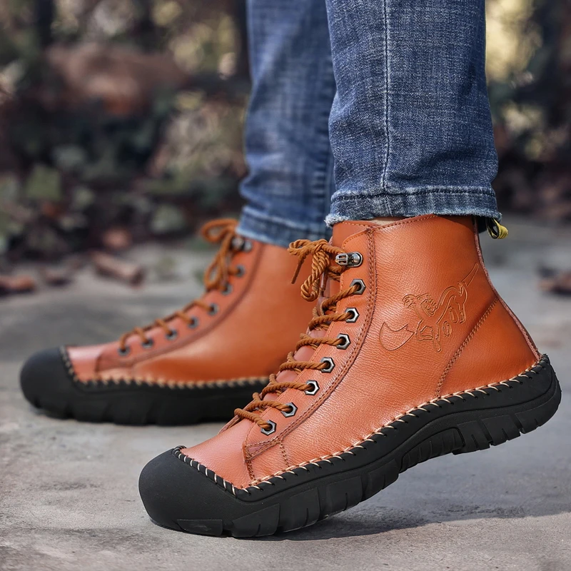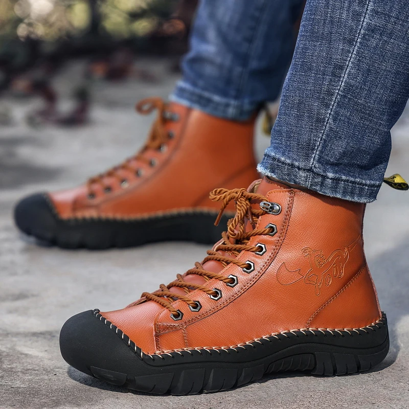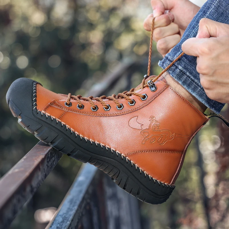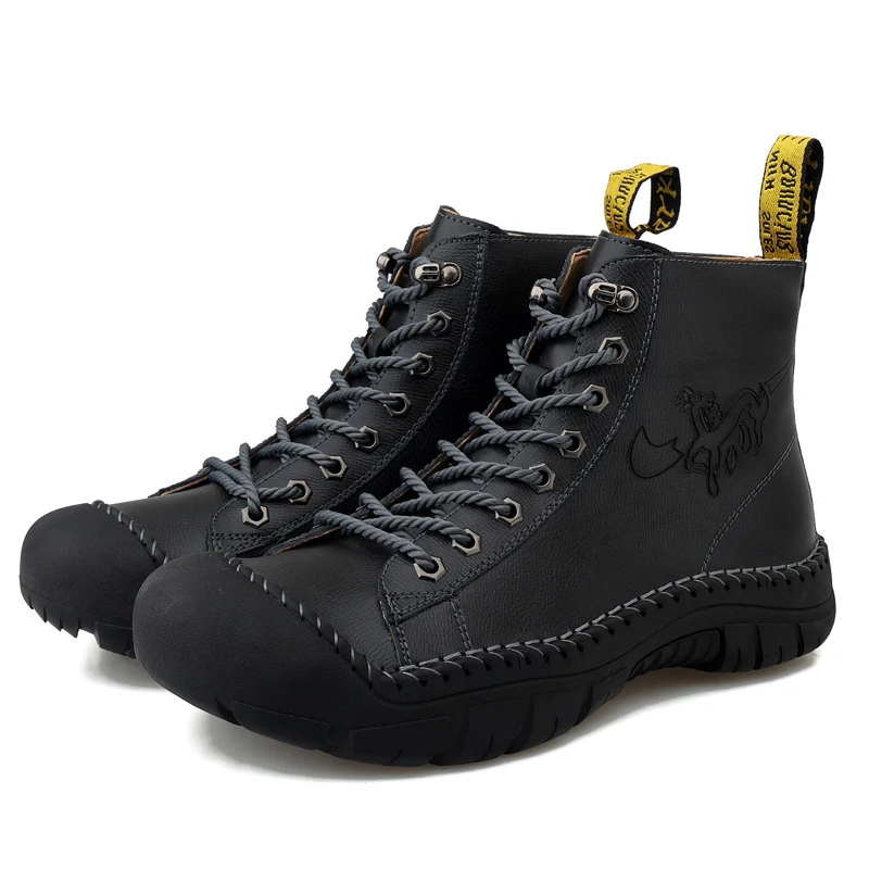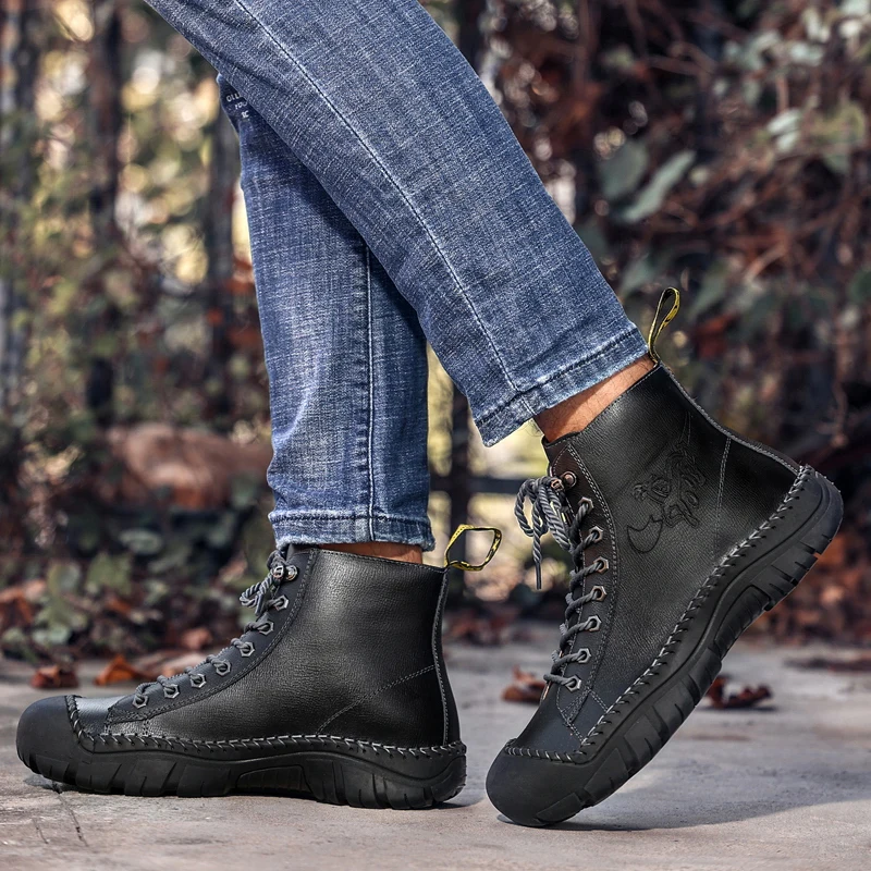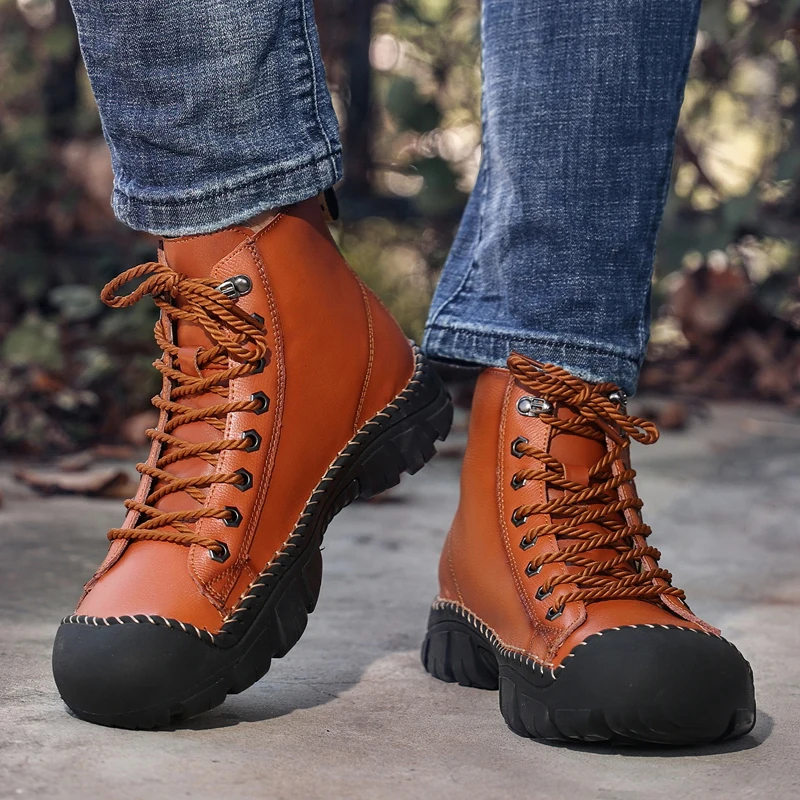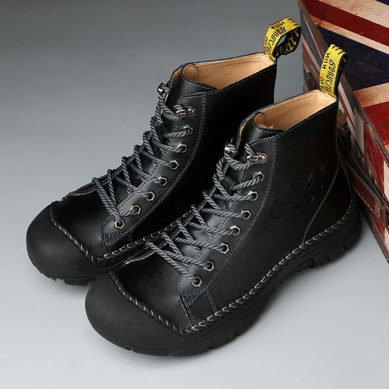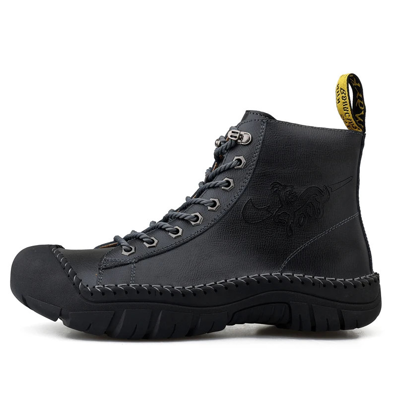 HIKEUP Botas para caminar al aire libre Zapatos altos para senderismo en montaña para hombre Botas Martin con cabeza de bolso grande para exteriores Dos capas de piel de vaca
