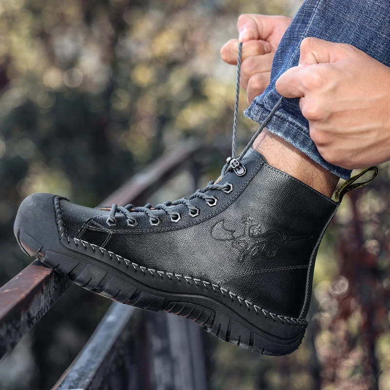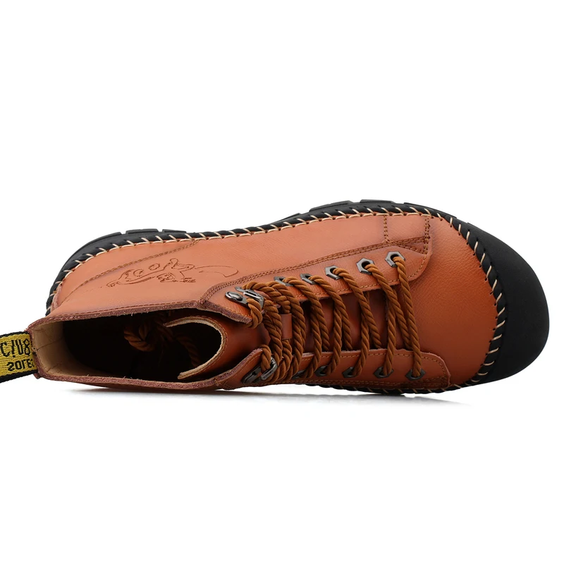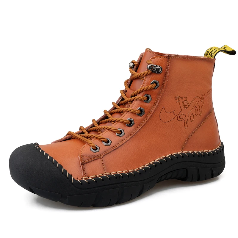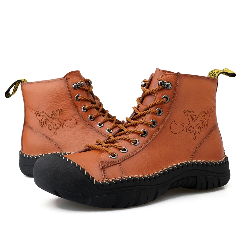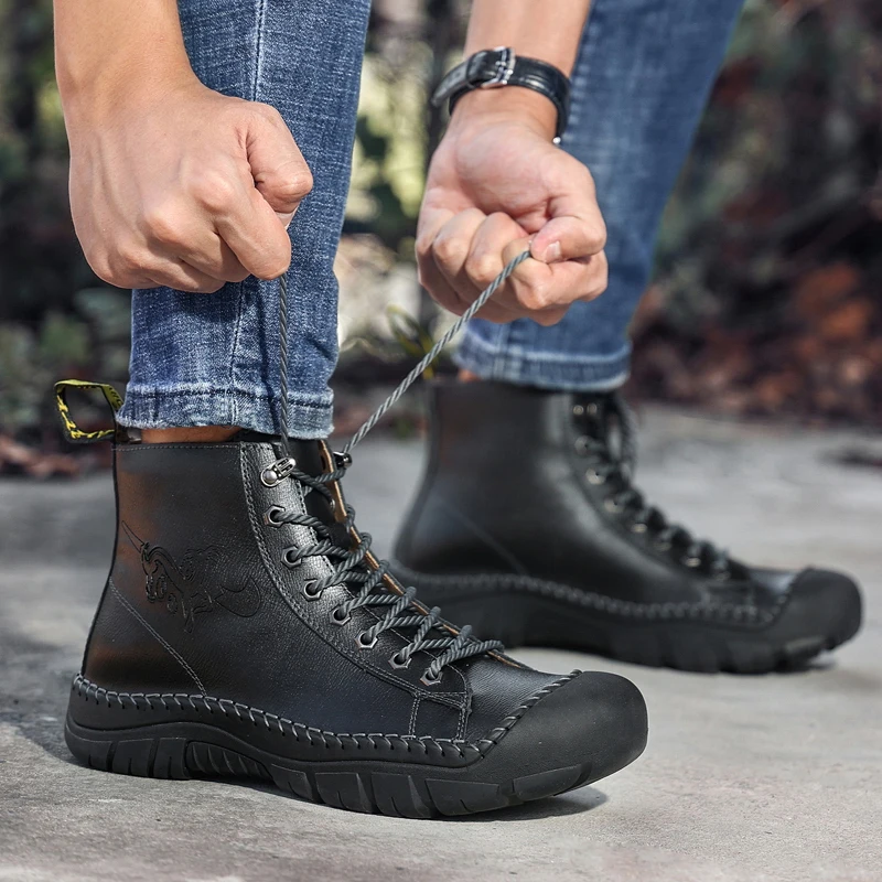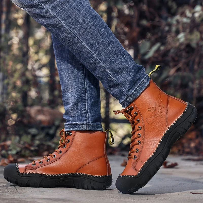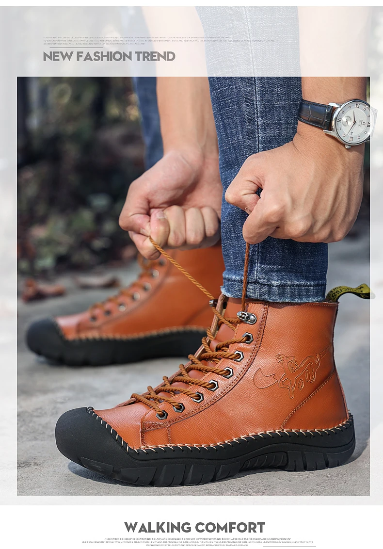 HIKEUP Botas para caminar al aire libre Zapatos altos para senderismo en montaña para hombre Botas Martin con cabeza de bolso grande para exteriores Dos capas de piel de vaca
