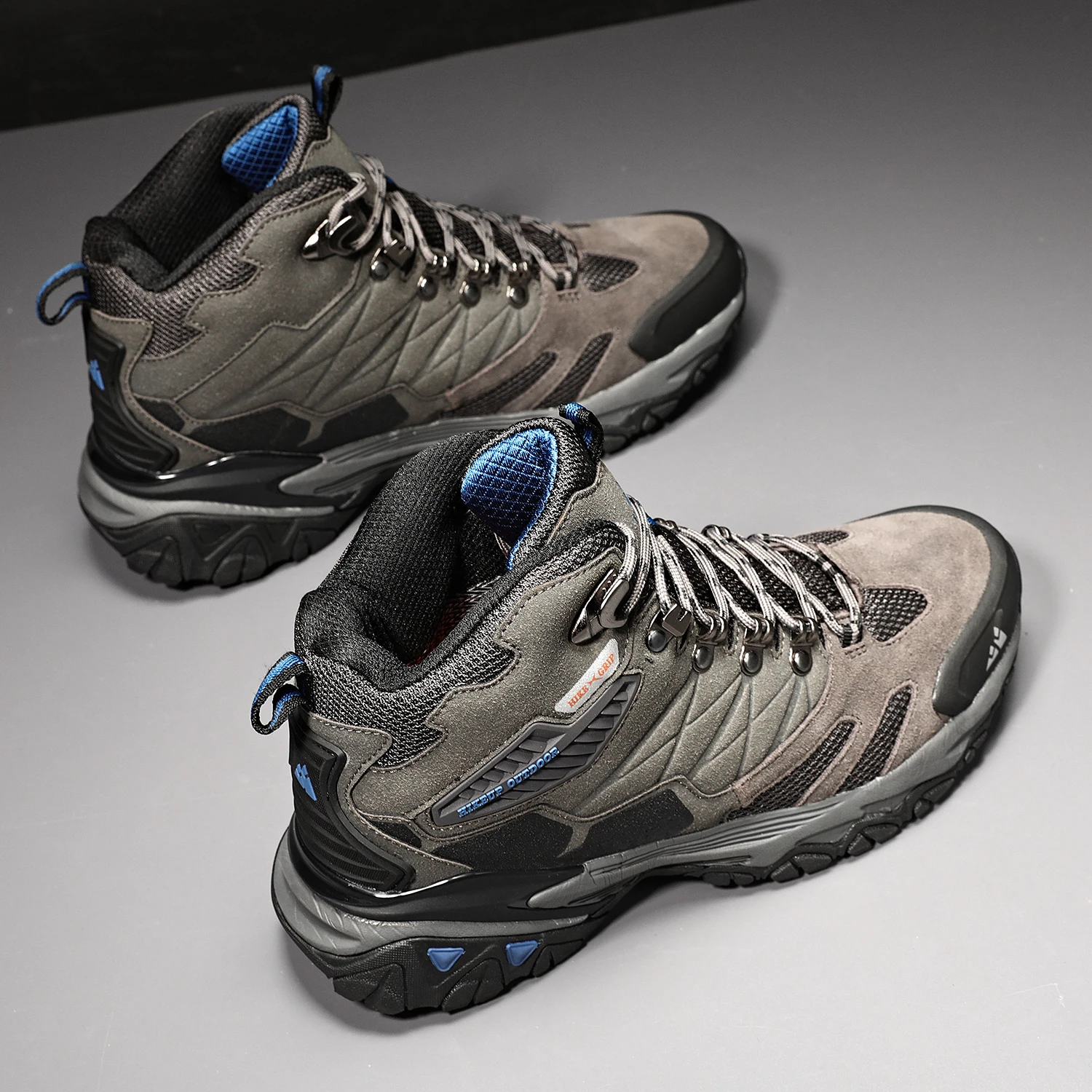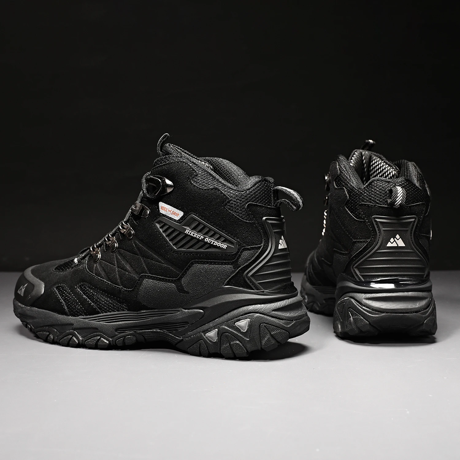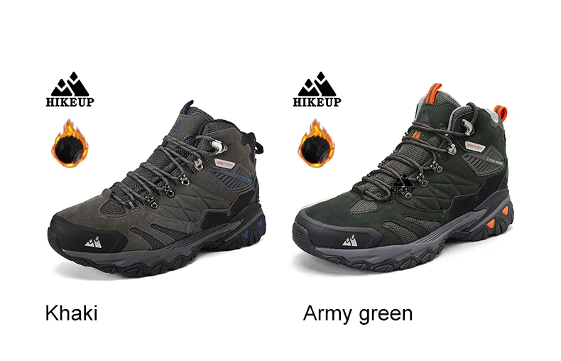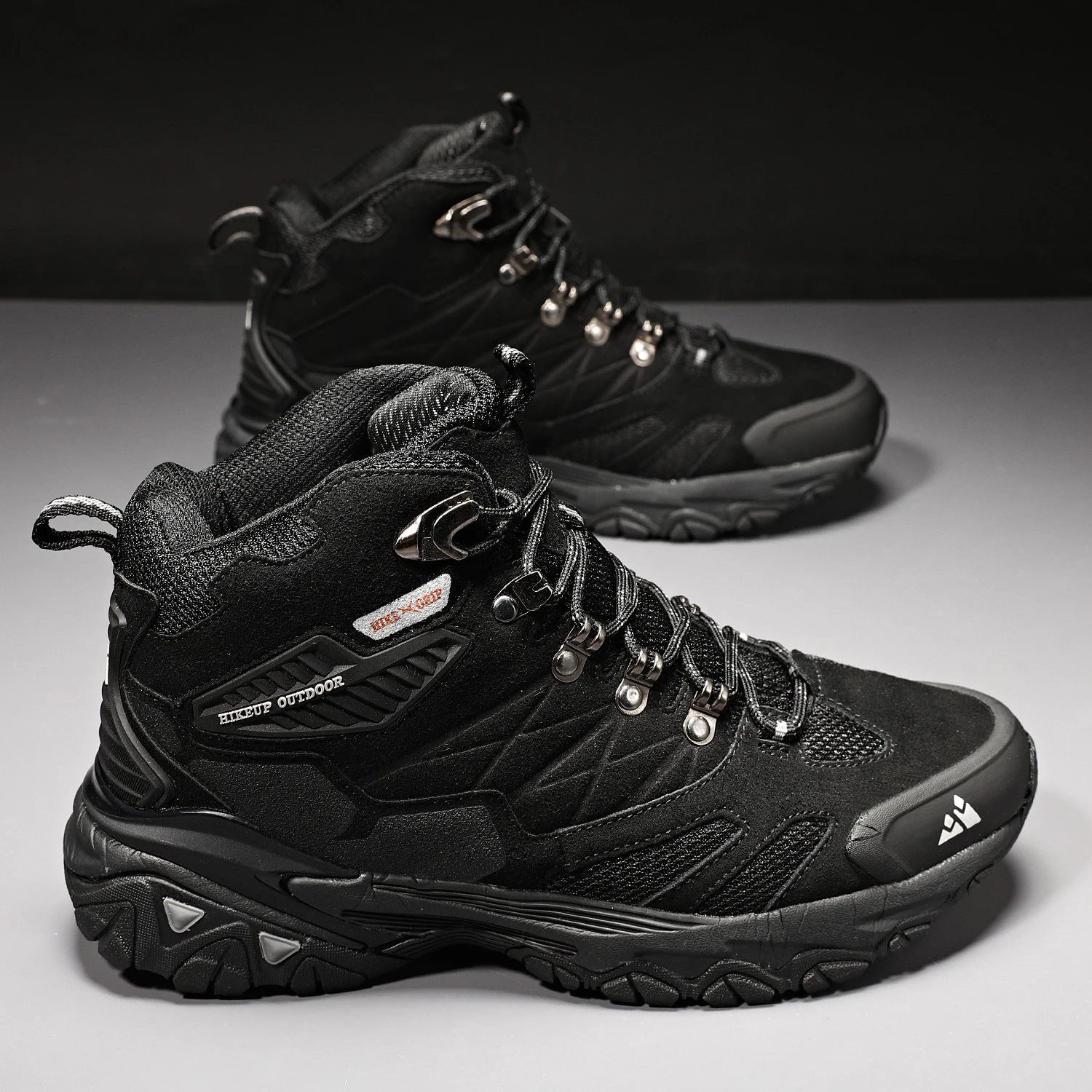 HIKEUP-Botas de invierno para hombre, botas de senderismo al aire libre, zapatos de senderismo de alta calidad de ante, botas militares de combate tácticas impermeables