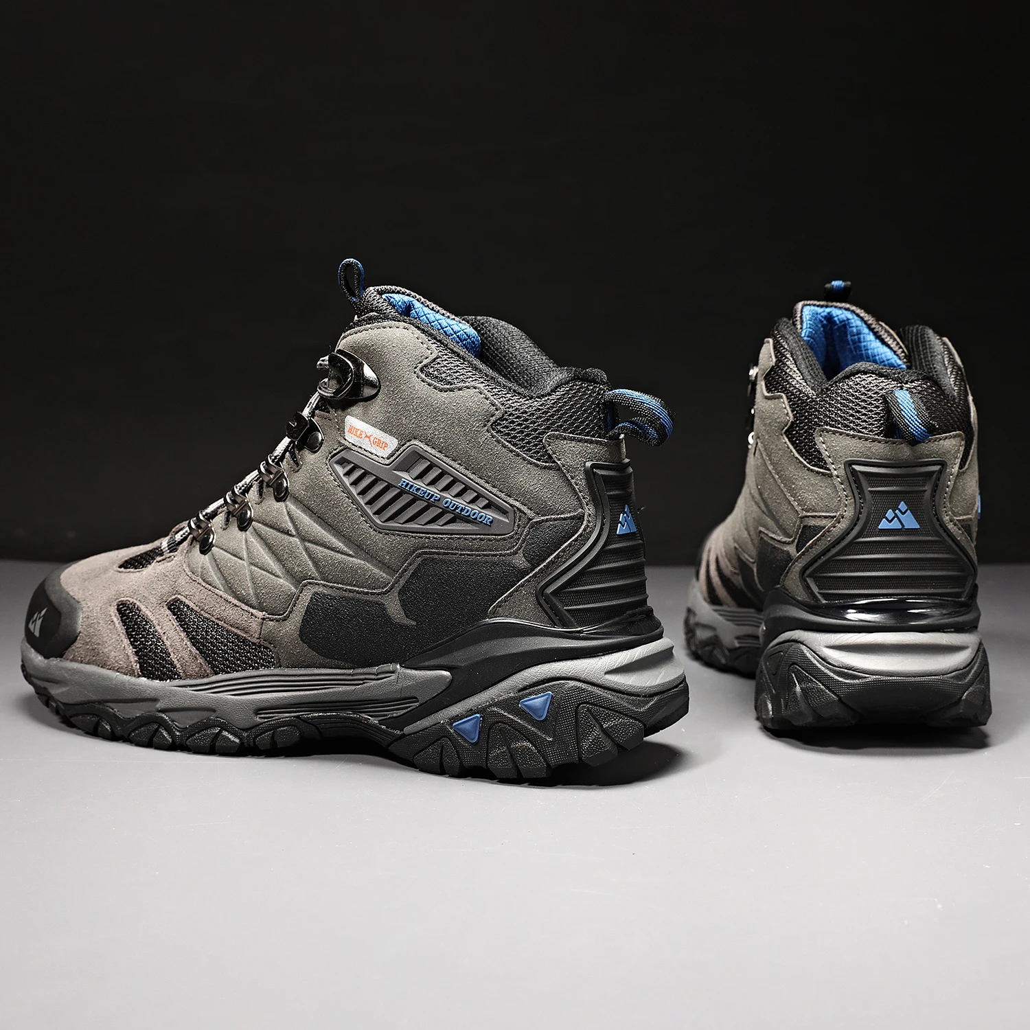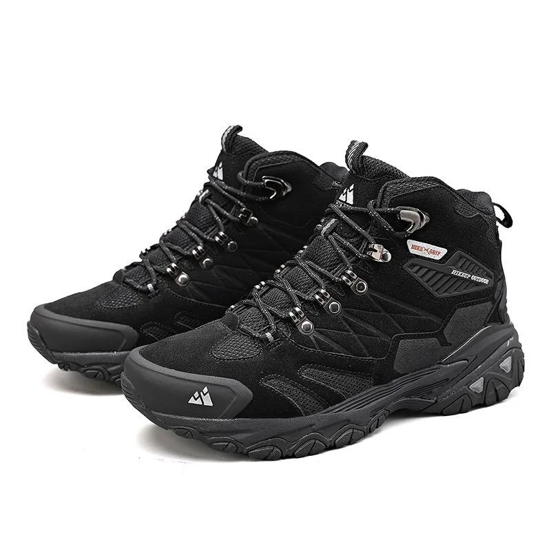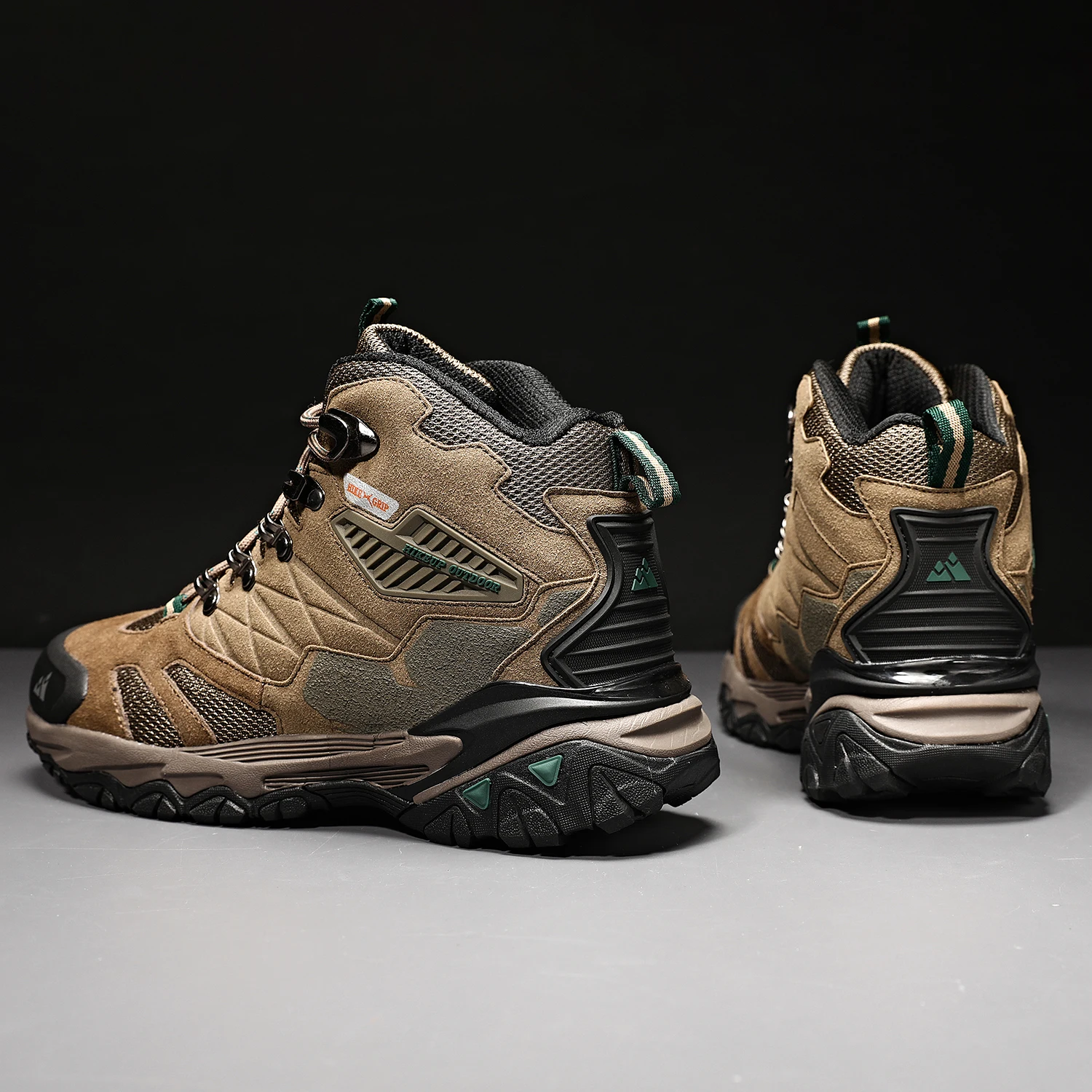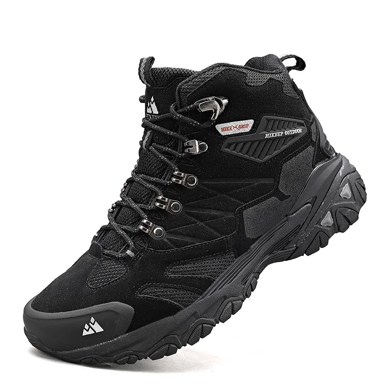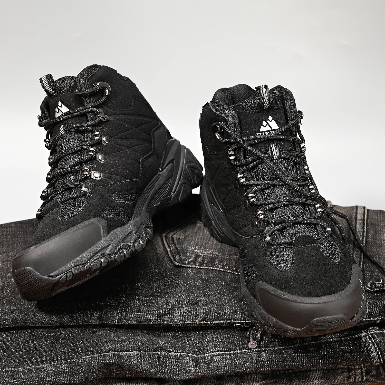 HIKEUP-Botas de invierno para hombre, botas de senderismo al aire libre, zapatos de senderismo de alta calidad de ante, botas militares de combate tácticas impermeables