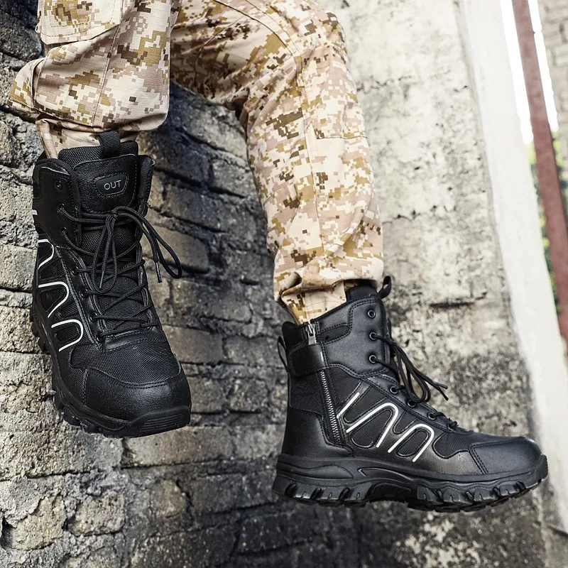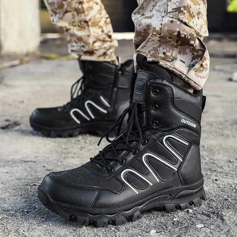 HIKEUP, botas de senderismo de alta calidad para hombre, zapatos de invierno para exteriores, botas militares tácticas especiales para hombre, zapatos de moda para exteriores, impermeables, talla 39-47