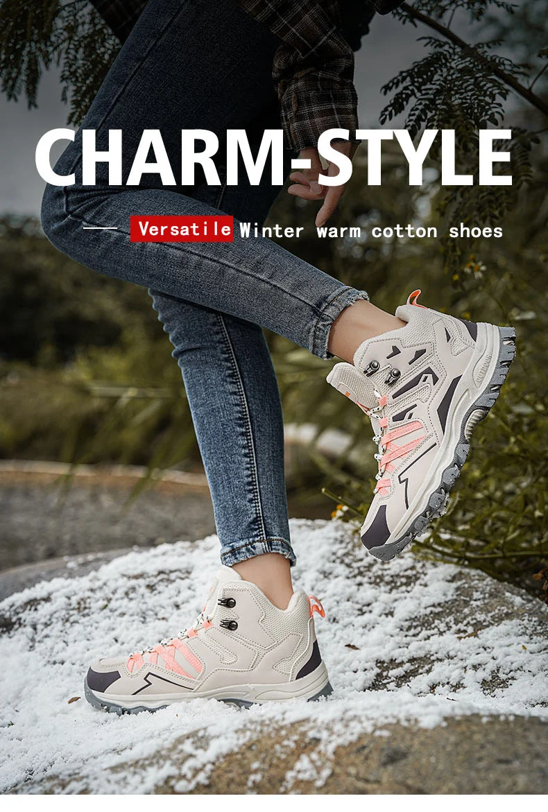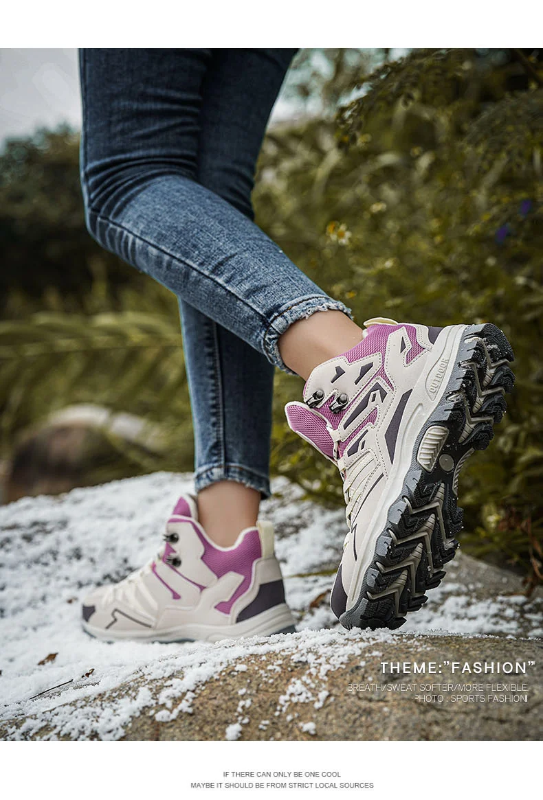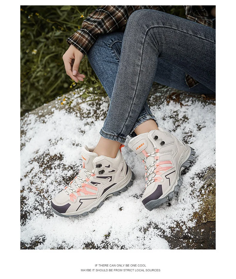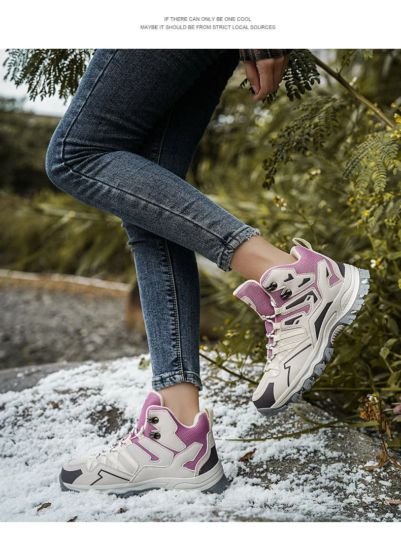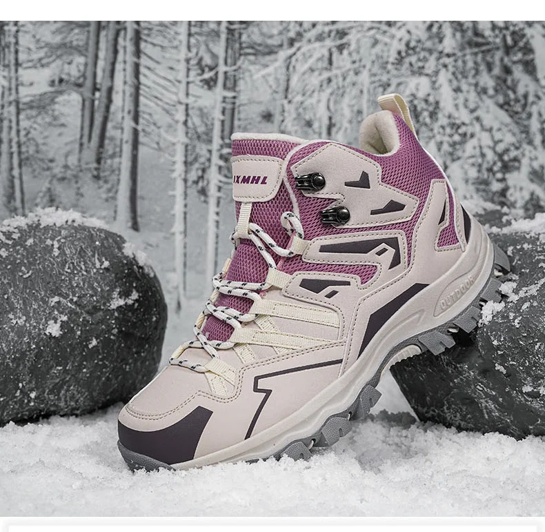 HIKEUP Botas de senderismo impermeables para mujer Invierno, botas de nieve aisladas de caña alta para climas fríos, zapatos cálidos de trekking antideslizantes