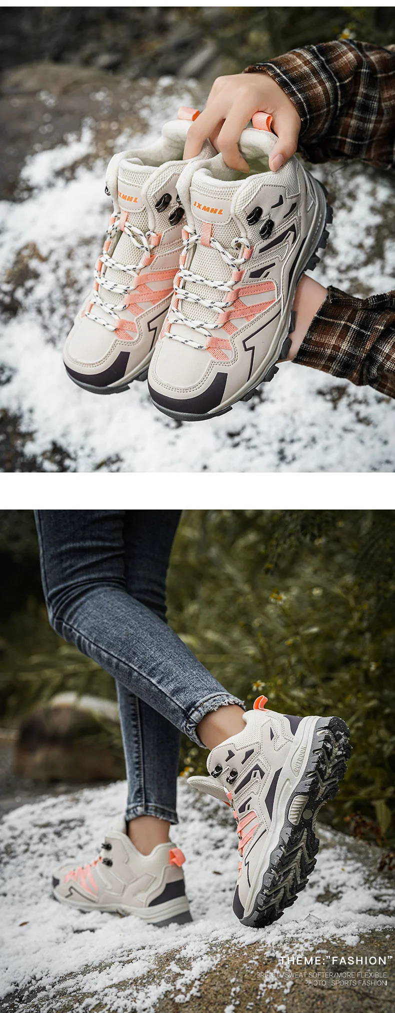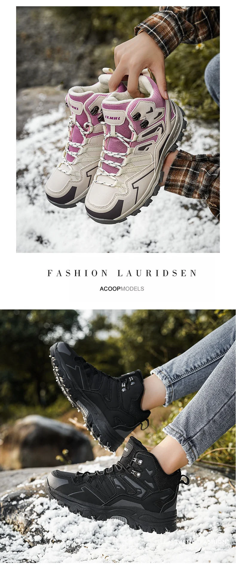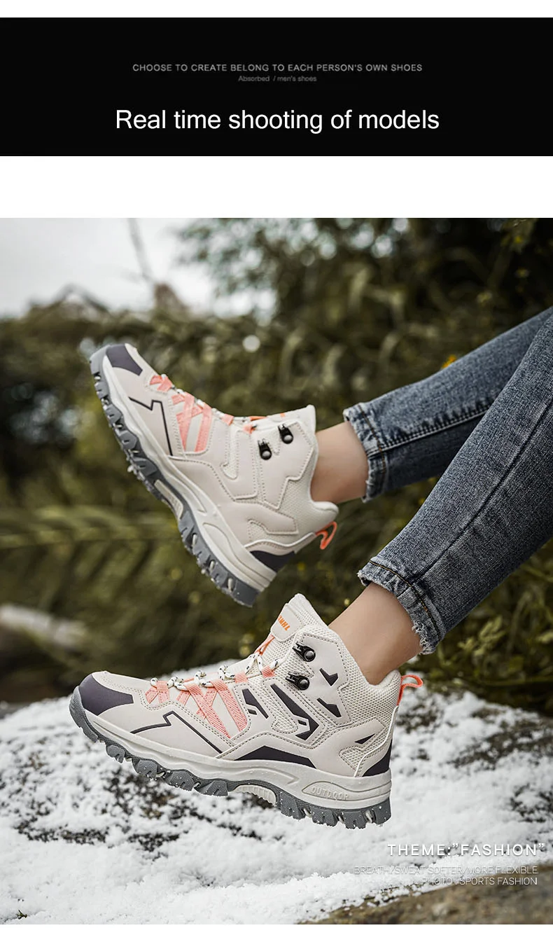 HIKEUP Botas de senderismo impermeables para mujer Invierno, botas de nieve aisladas de caña alta para climas fríos, zapatos cálidos de trekking antideslizantes