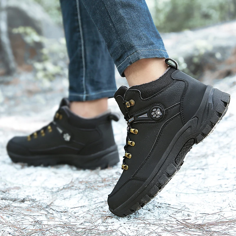 HIKEUP-Botines de Cuero Genuino para Hombre, Botas de Nieve de Goma Transpirable, Zapatos de Seguridad PARA EL Trabajo, Talla Grande 39-50