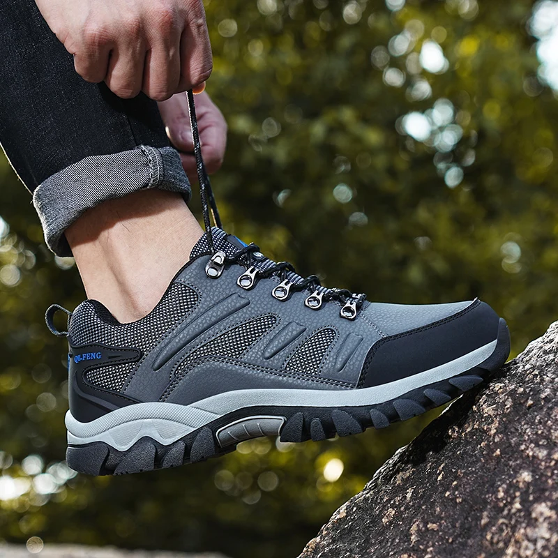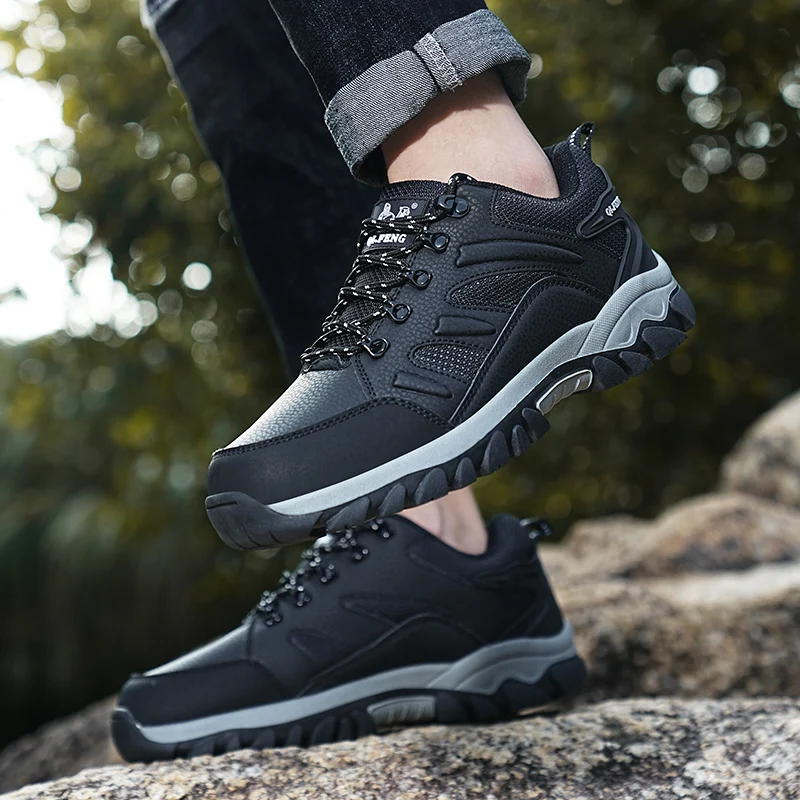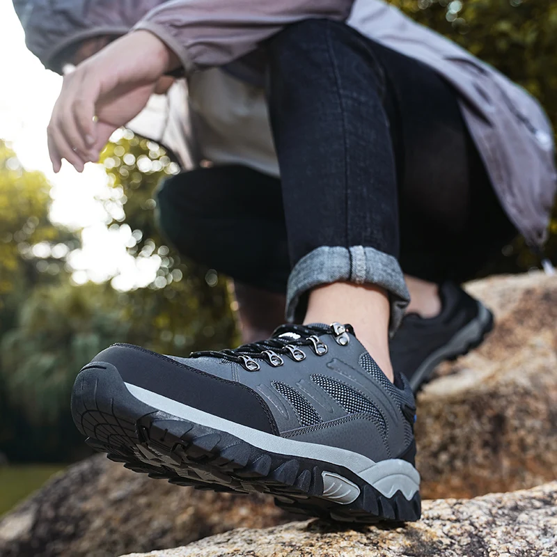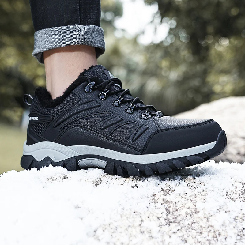 HIKEUP, botines impermeables para hombre, botas de nieve de invierno de cuero genuino, zapatos de seguridad para el trabajo de goma transpirable para mujer, talla grande 36-48