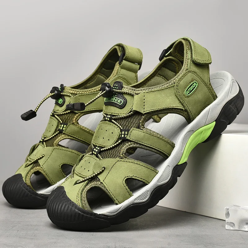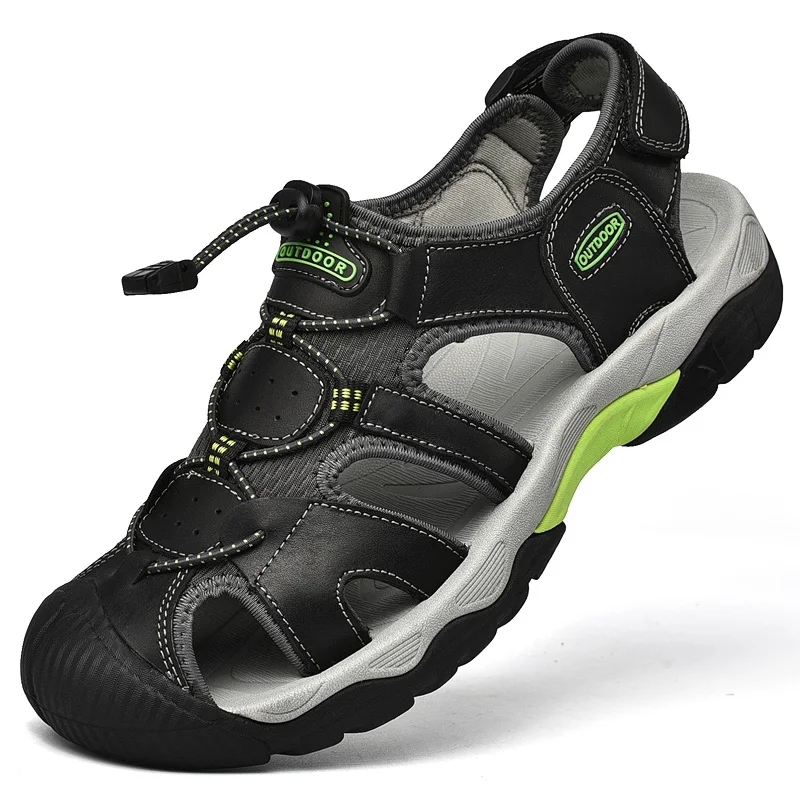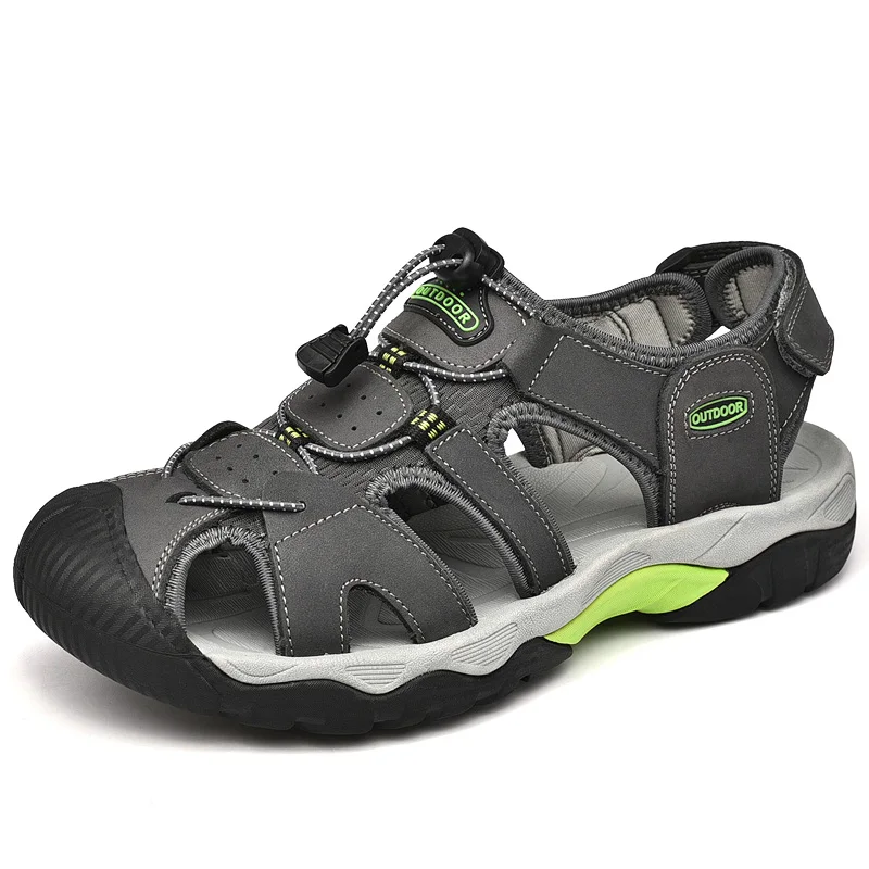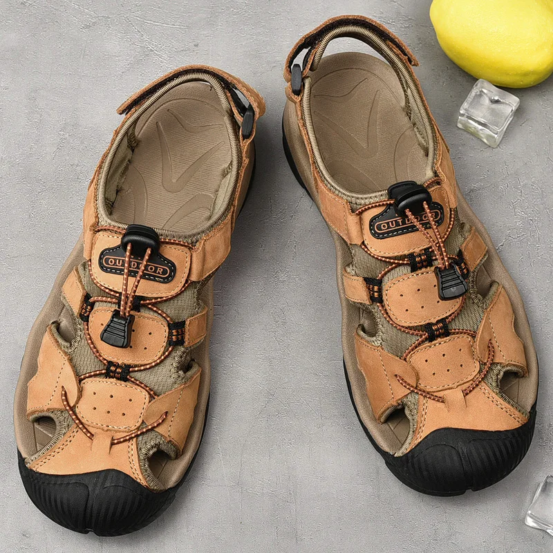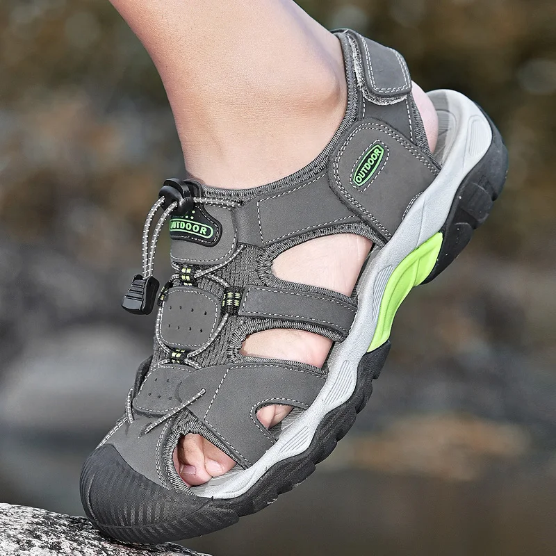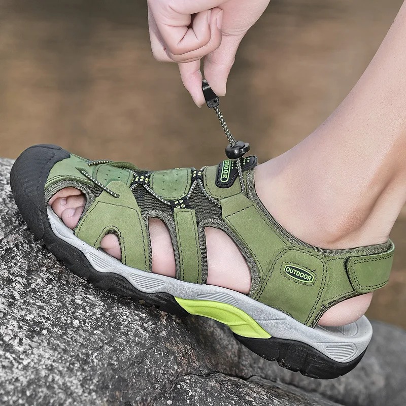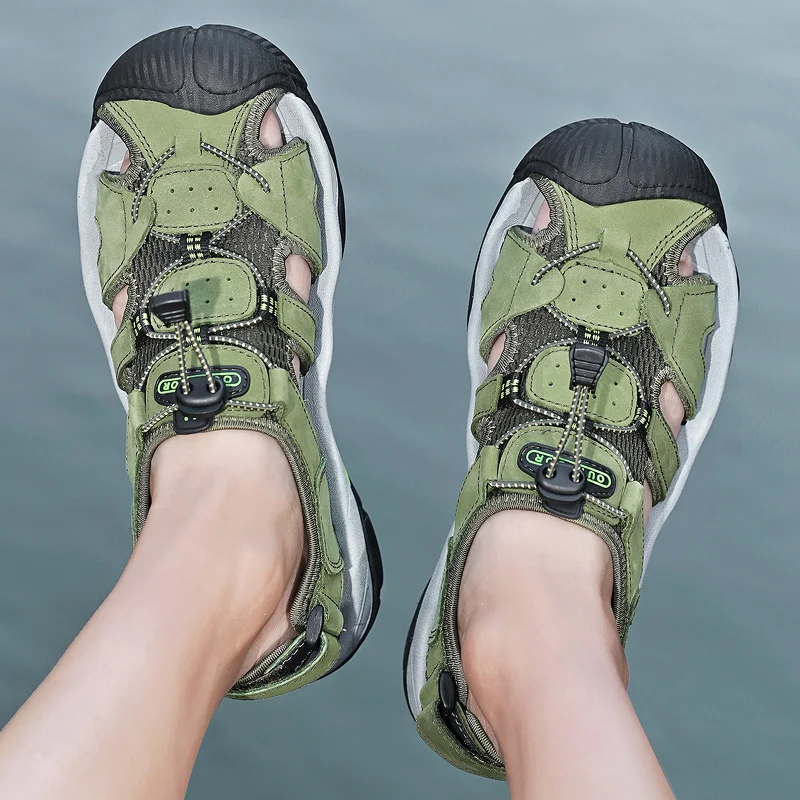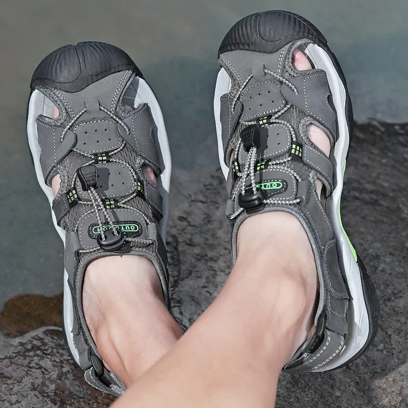 HIKEUP, nuevas sandalias de verano para hombre, zapatos de senderismo al aire libre para parejas, zapatos transpirables antideslizantes de piel de vaca, zapatos de capa superior, sandalias protectoras con punta