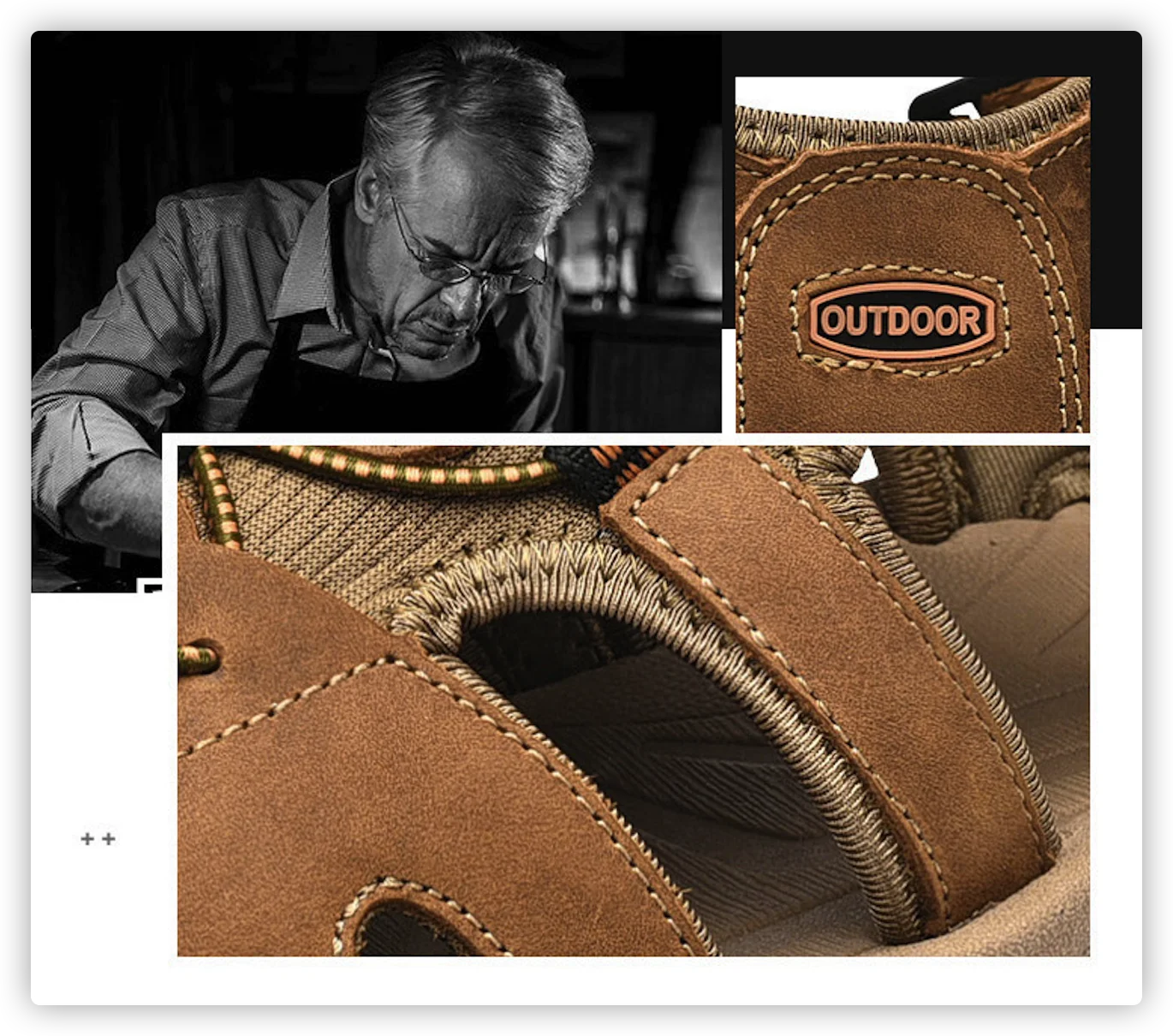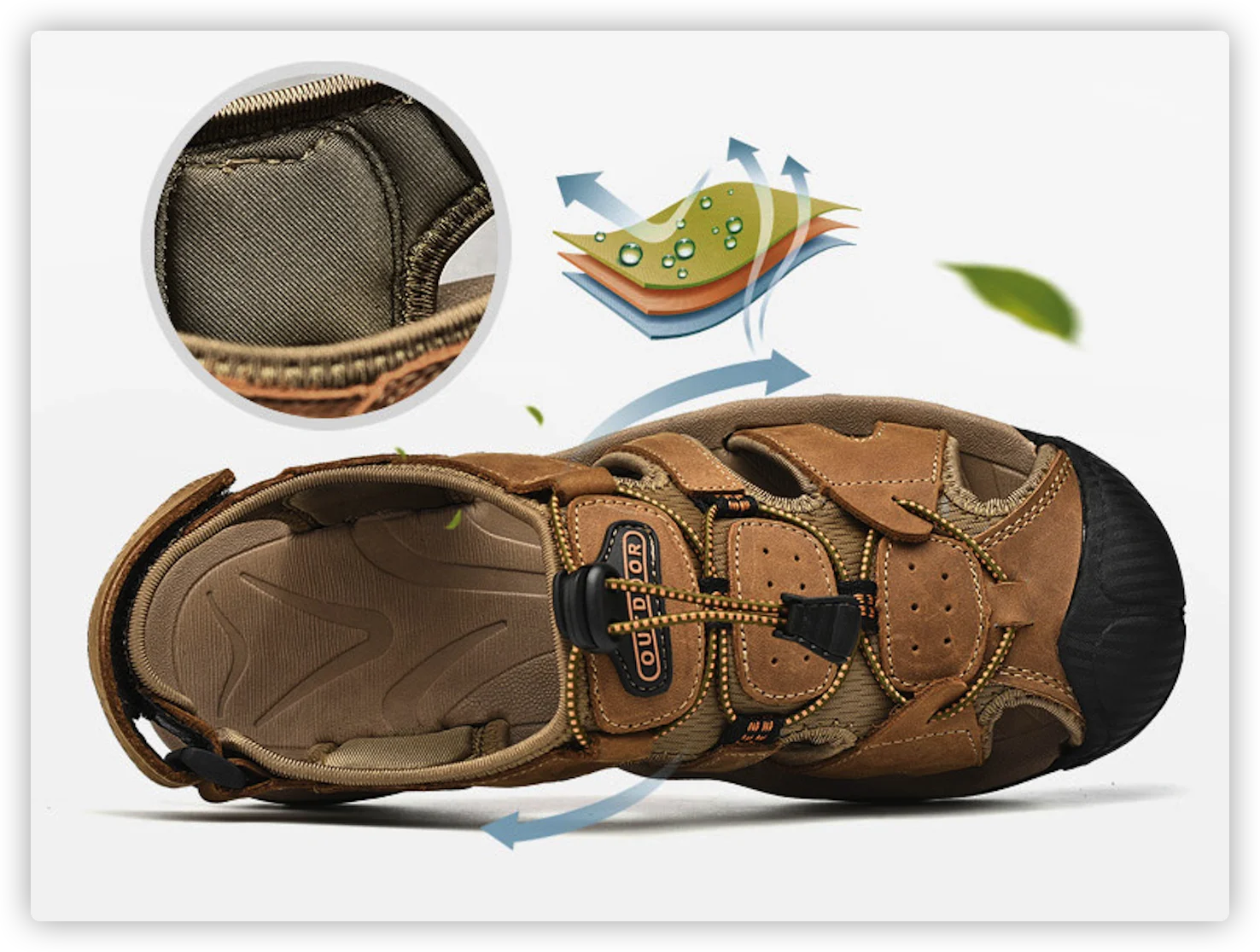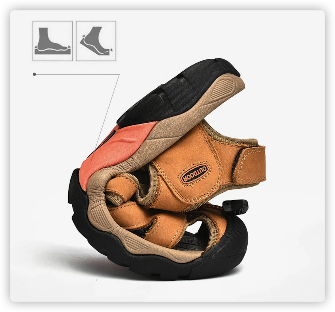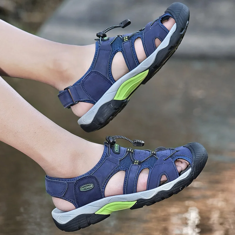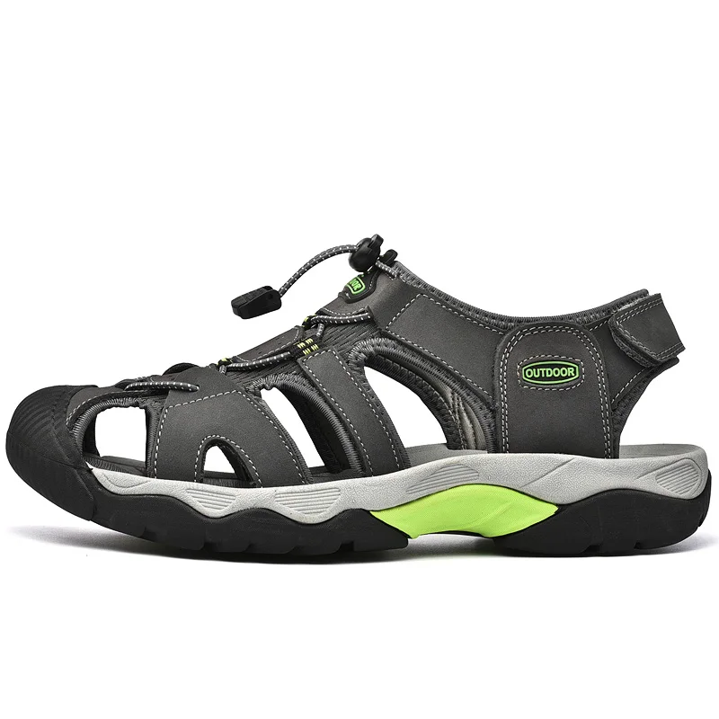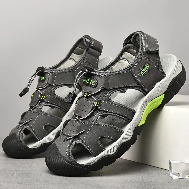 HIKEUP, nuevas sandalias de verano para hombre, zapatos de senderismo al aire libre para parejas, zapatos transpirables antideslizantes de piel de vaca, zapatos de capa superior, sandalias protectoras con punta