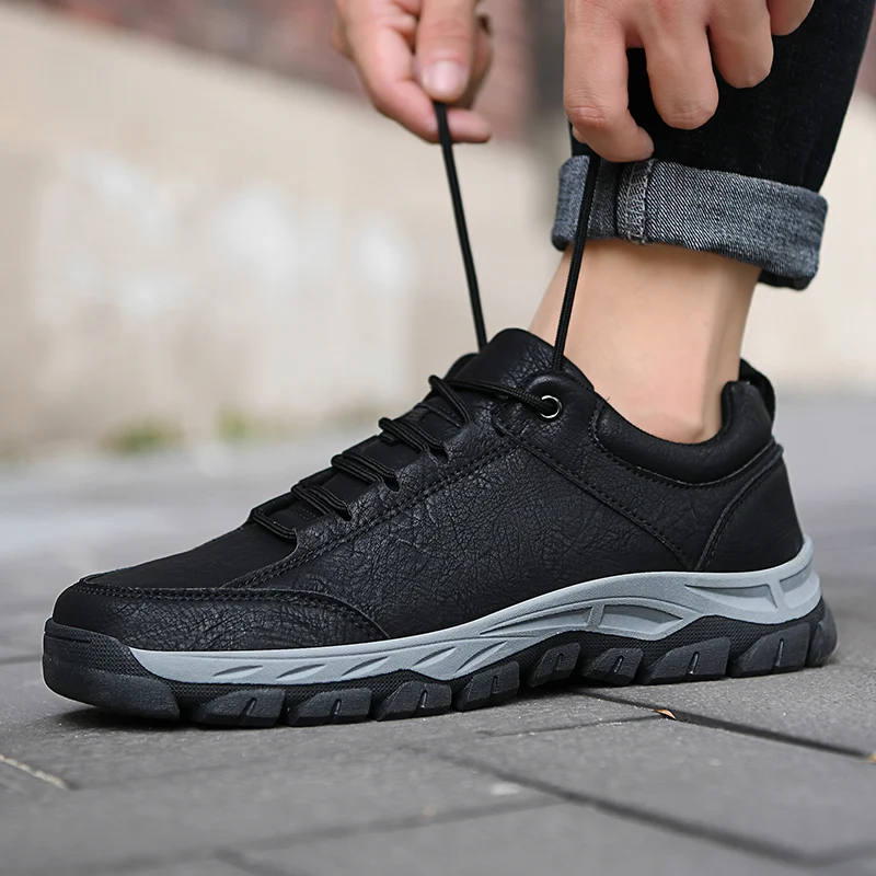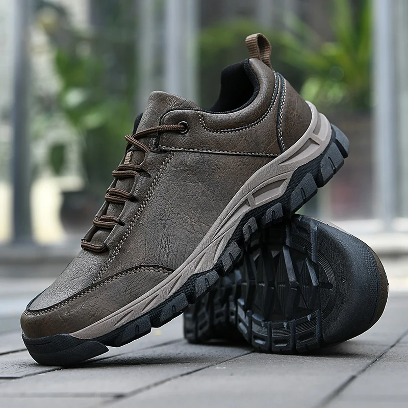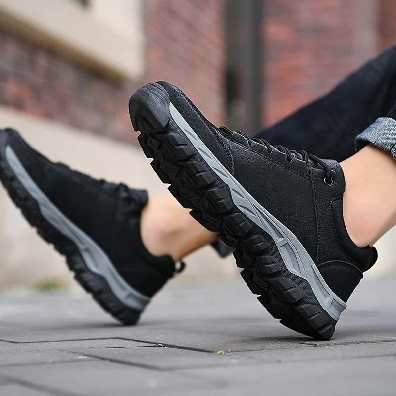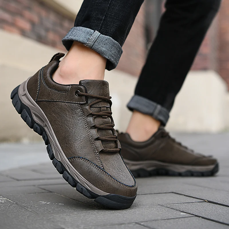 HIKEUP-Zapatillas de deporte transpirables para hombre, material de cuero genuino, para senderismo, senderismo, caminar, deportes de talla grande