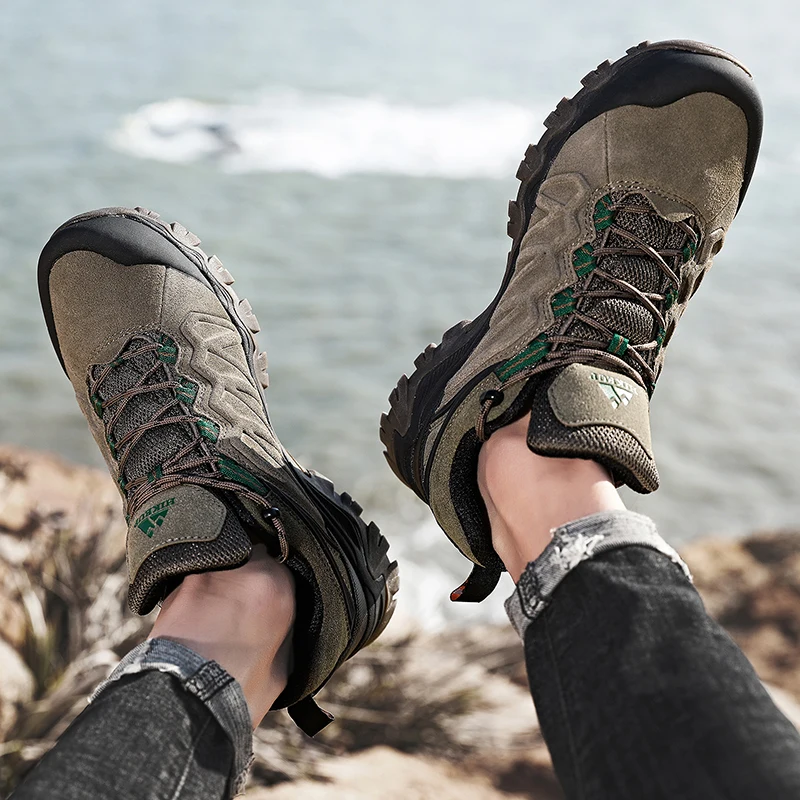 HIKEUP Antideslizante Resistente al desgaste Zapatos de senderismo al aire libre Transpirable a prueba de salpicaduras Escalada Hombres Zapatillas Trekking Caza Turismo Zapatos de montaña