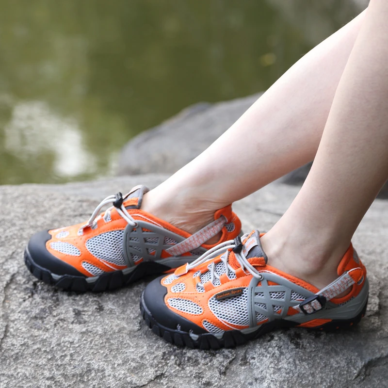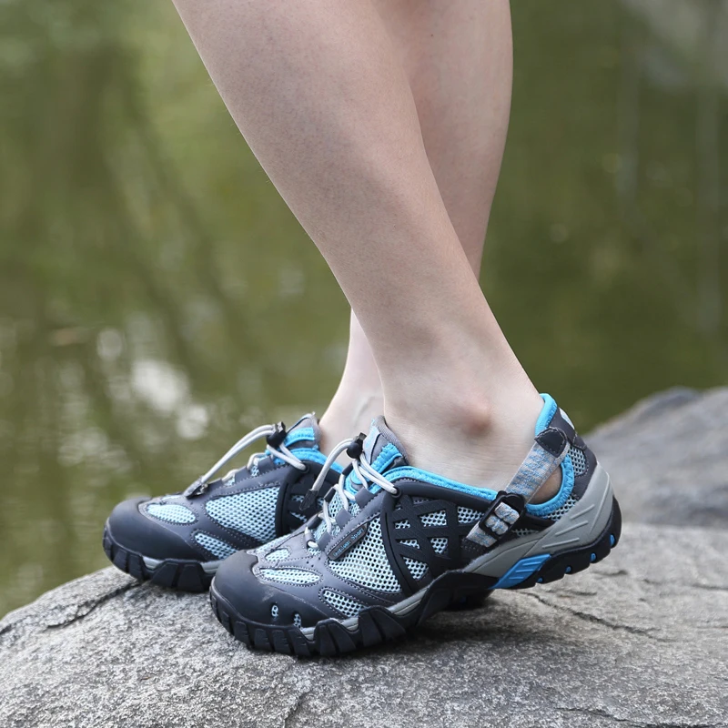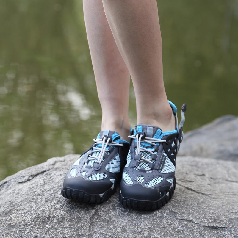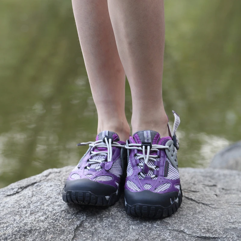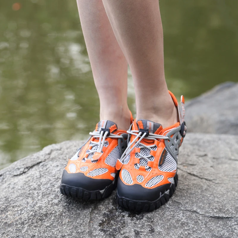 HIKEUP Outdoor Men Water Shoes Women Hiking Shoes Quick Dry Fast Interference Breathable Non-slip Rubber Sole PU Walking Shoe