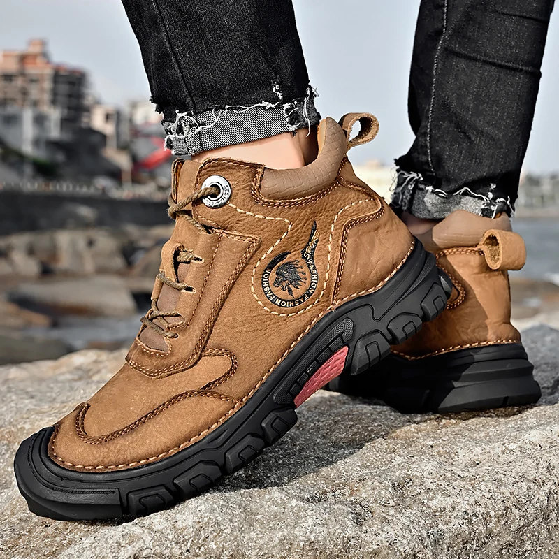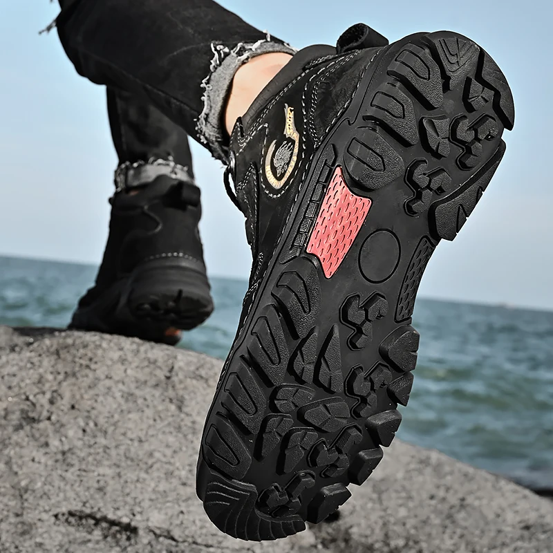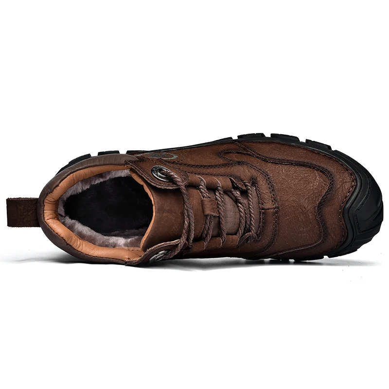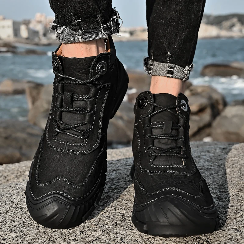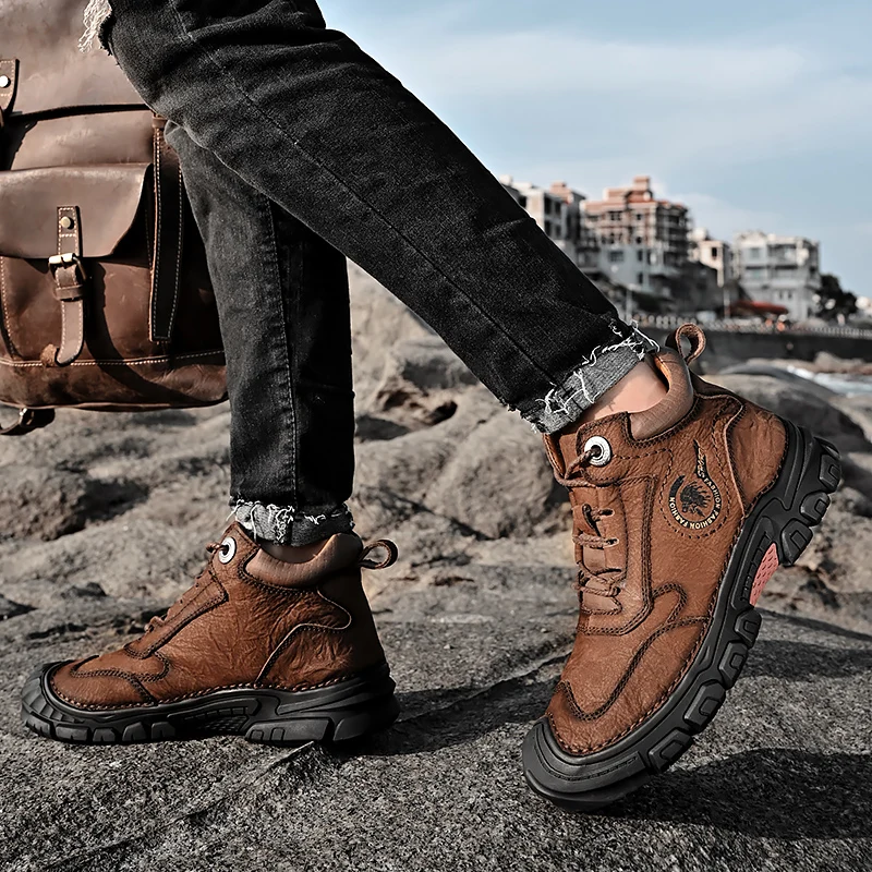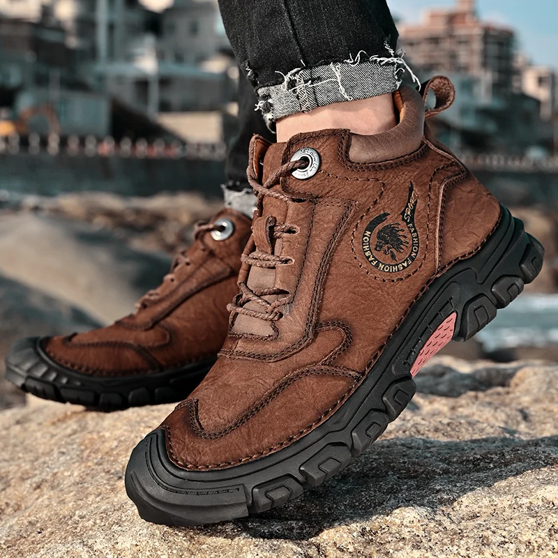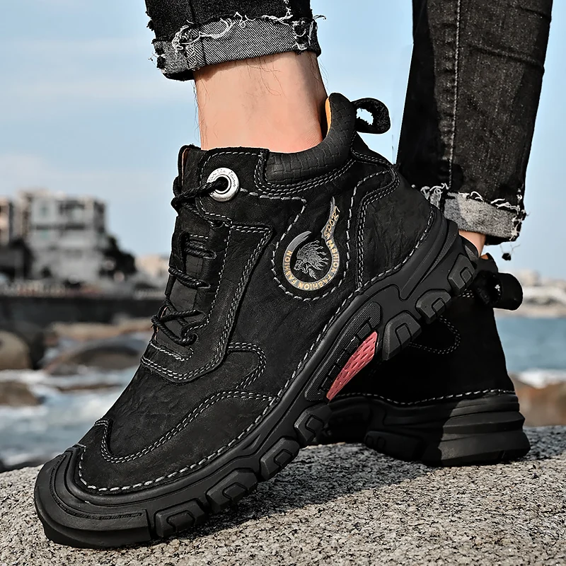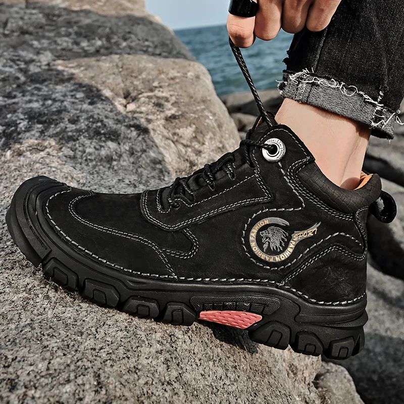 HIKEUP Men's Walking Shoes Winter Outdoor Hiking Boots Genuien Leather Cowhide Trendy Non-slip Sole Stable Casual Sneaker
