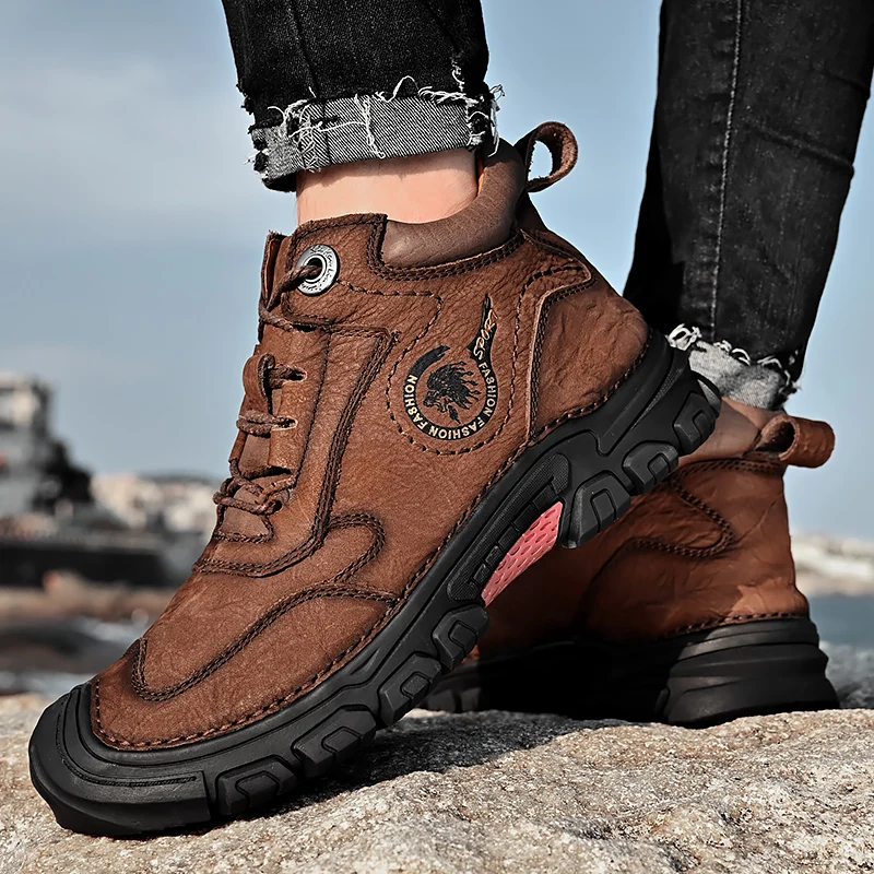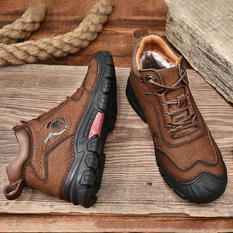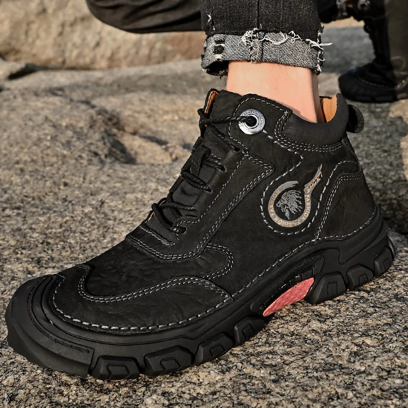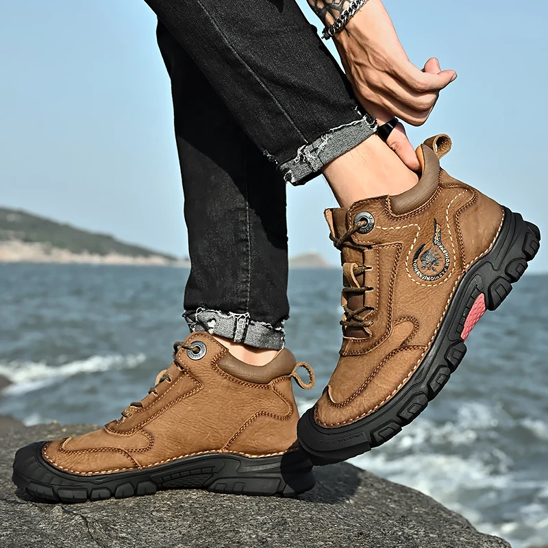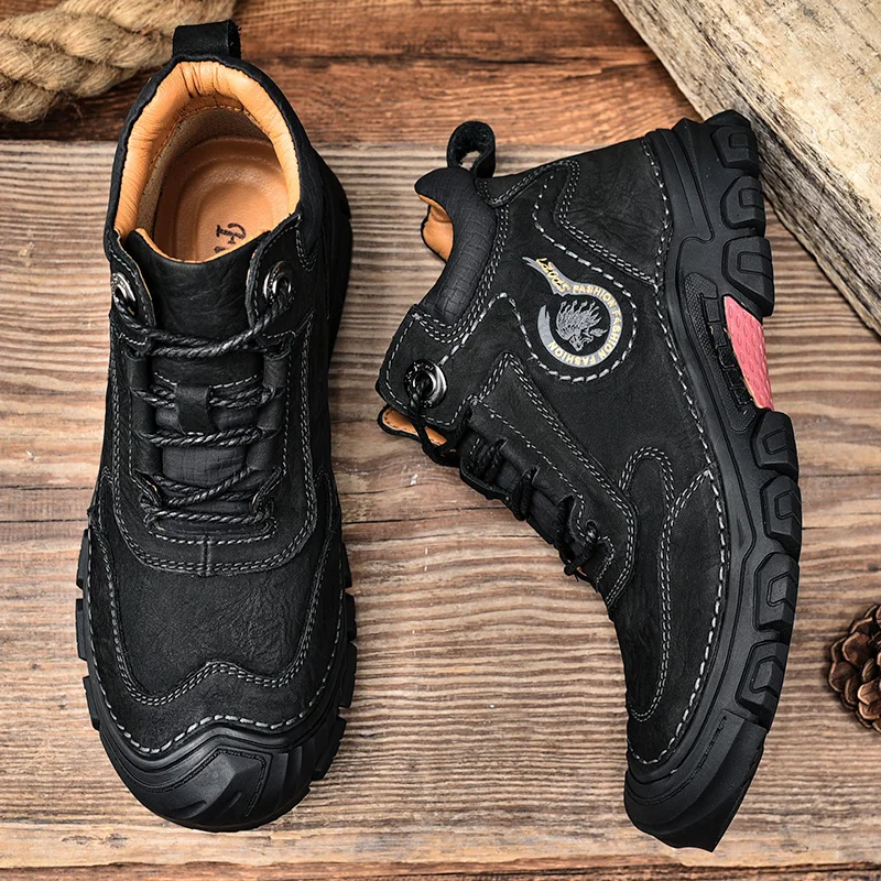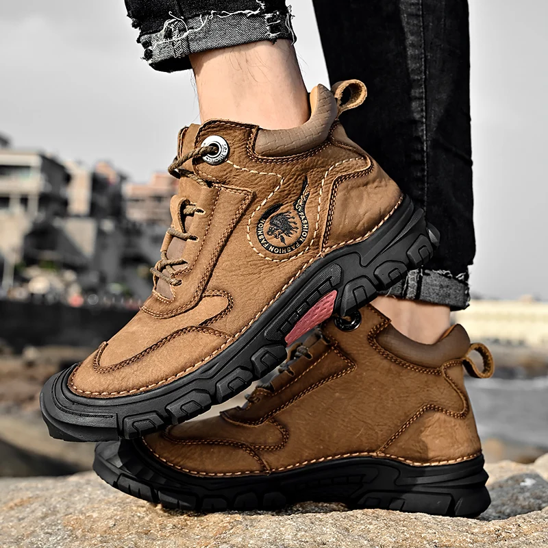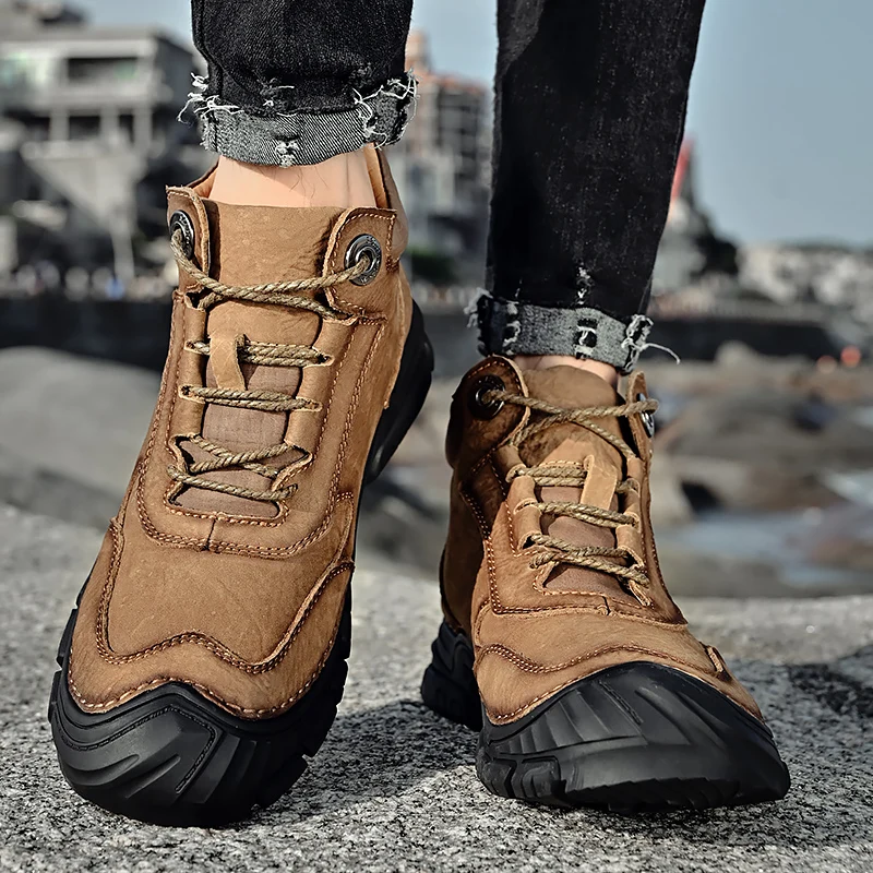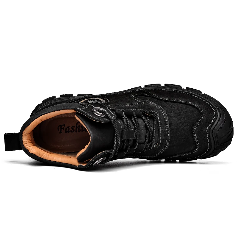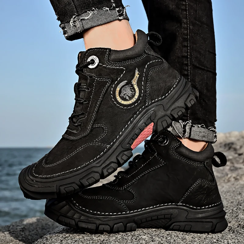HIKEUP Men's Walking Shoes Winter Outdoor Hiking Boots Genuien Leather Cowhide Trendy Non-slip Sole Stable Casual Sneaker