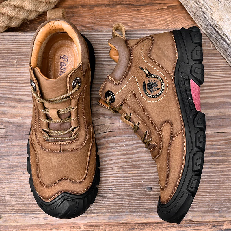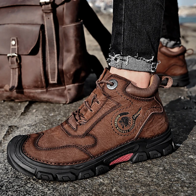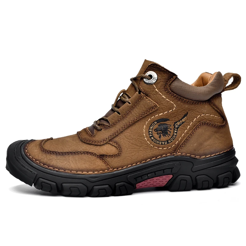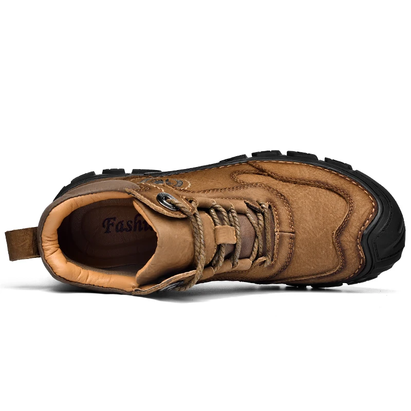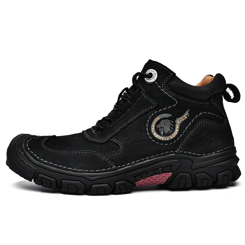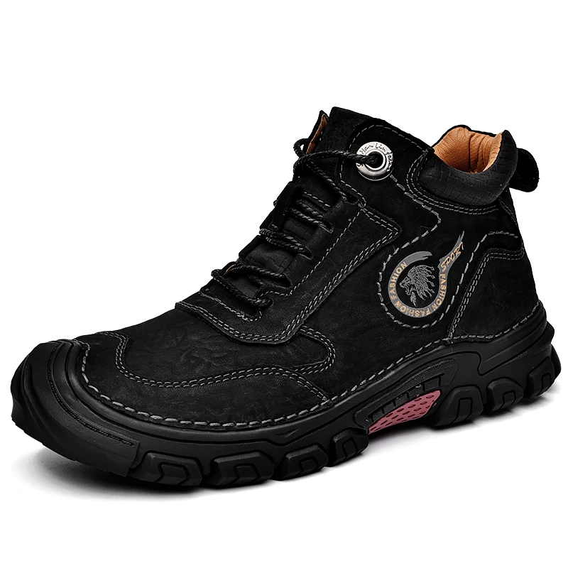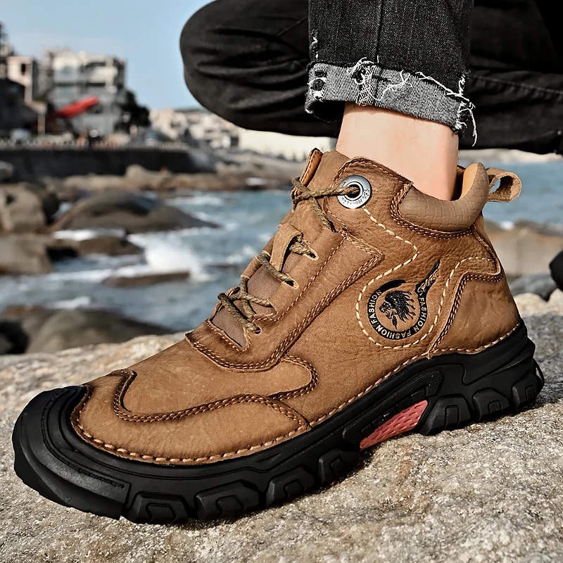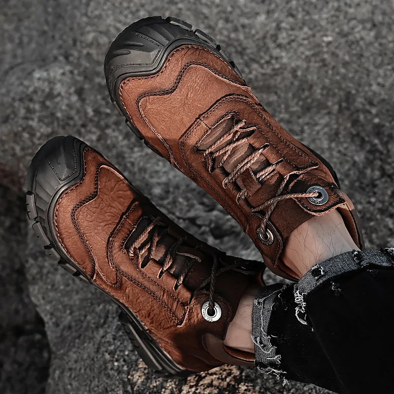 HIKEUP Men's Walking Shoes Winter Outdoor Hiking Boots Genuien Leather Cowhide Trendy Non-slip Sole Stable Casual Sneaker