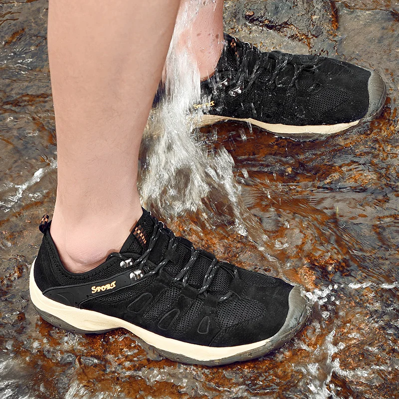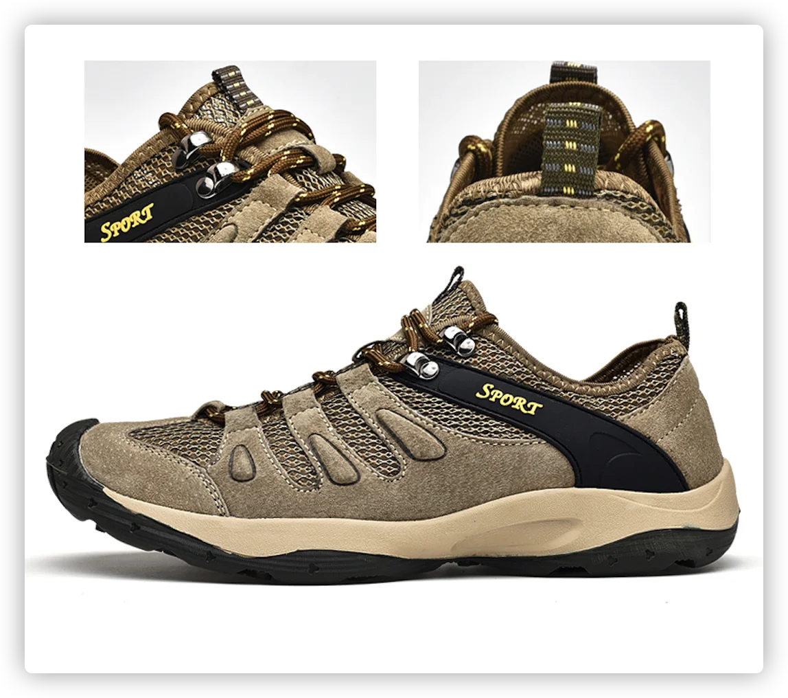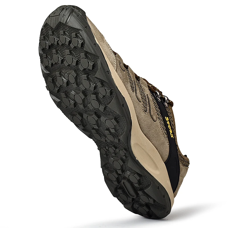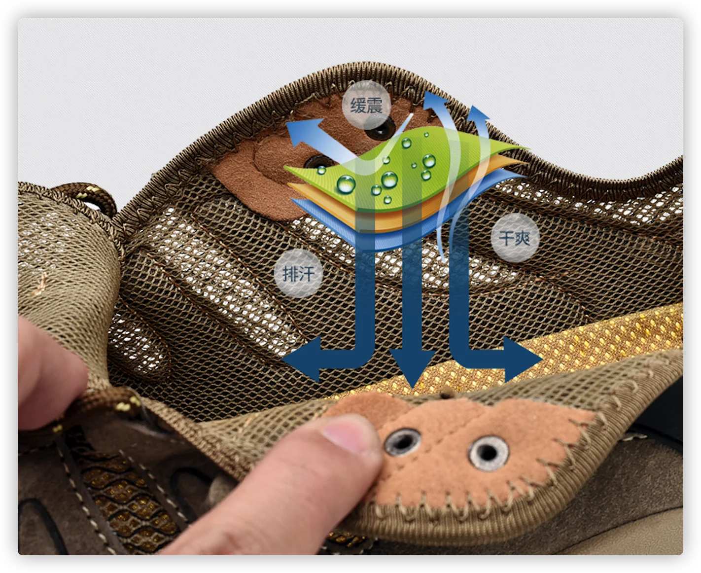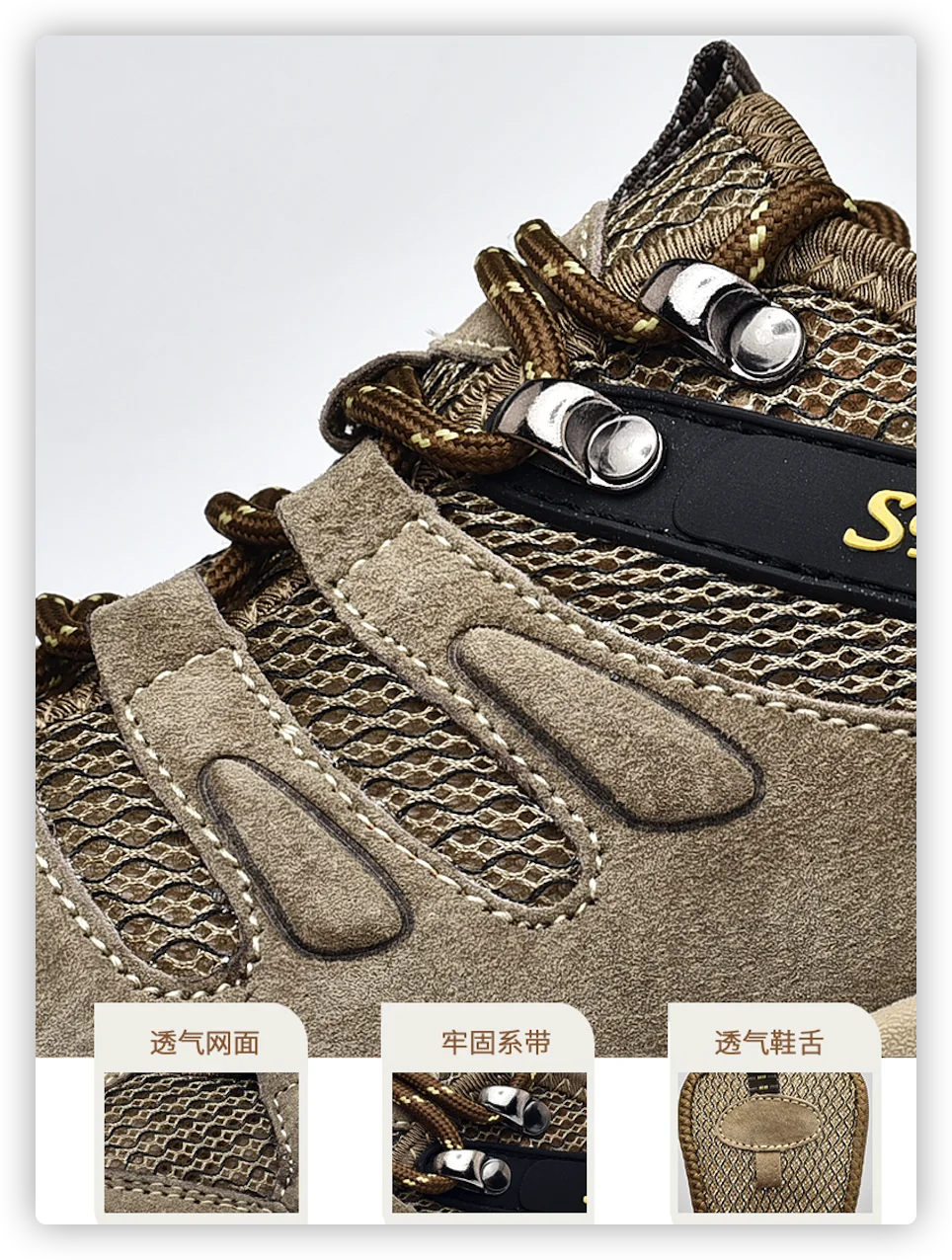 HIKEUP hombres montañismo zapatos de cuero genuino al aire libre zapatos de malla transpirable cómodo deporte Casual caza zapatillas