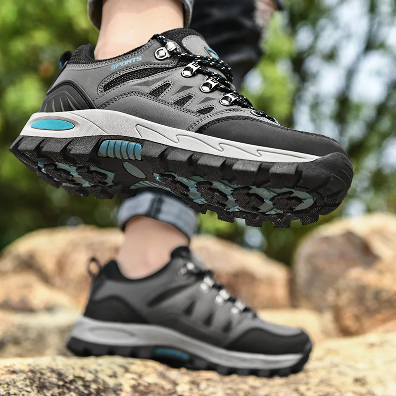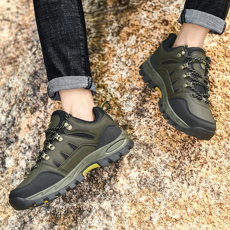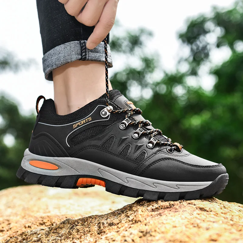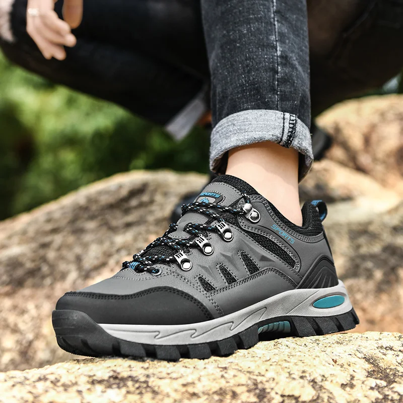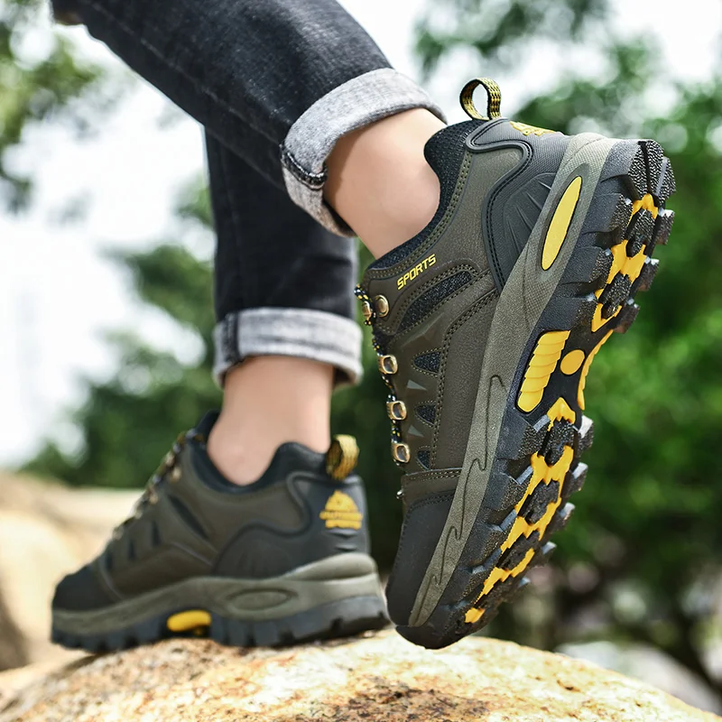 HIKEUP Otoño e Invierno al aire libre zapatos de senderismo hombres mujeres zapatillas de deporte modelos de pareja cuero de alta calidad deporte hombres Trekking de talla grande