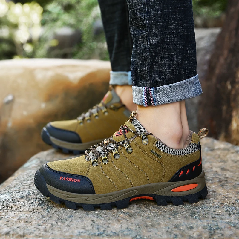 HIKEUP, zapatos de senderismo para hombre, zapatos de cuero de ante para exteriores, resistentes al desgaste, impermeables, Botas de senderismo para hombre, zapatillas tácticas para caminar
