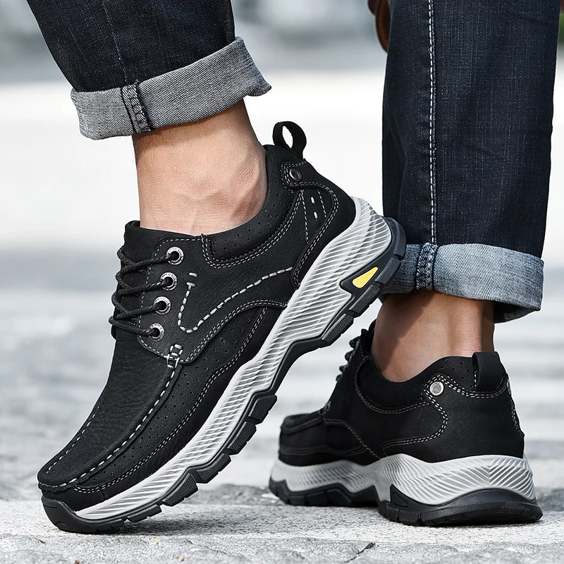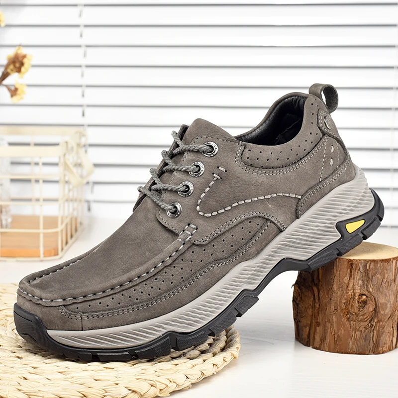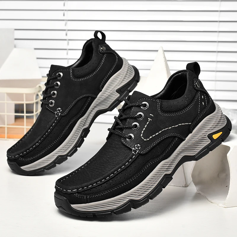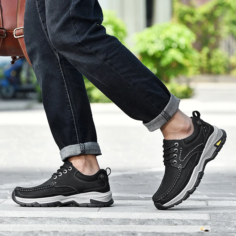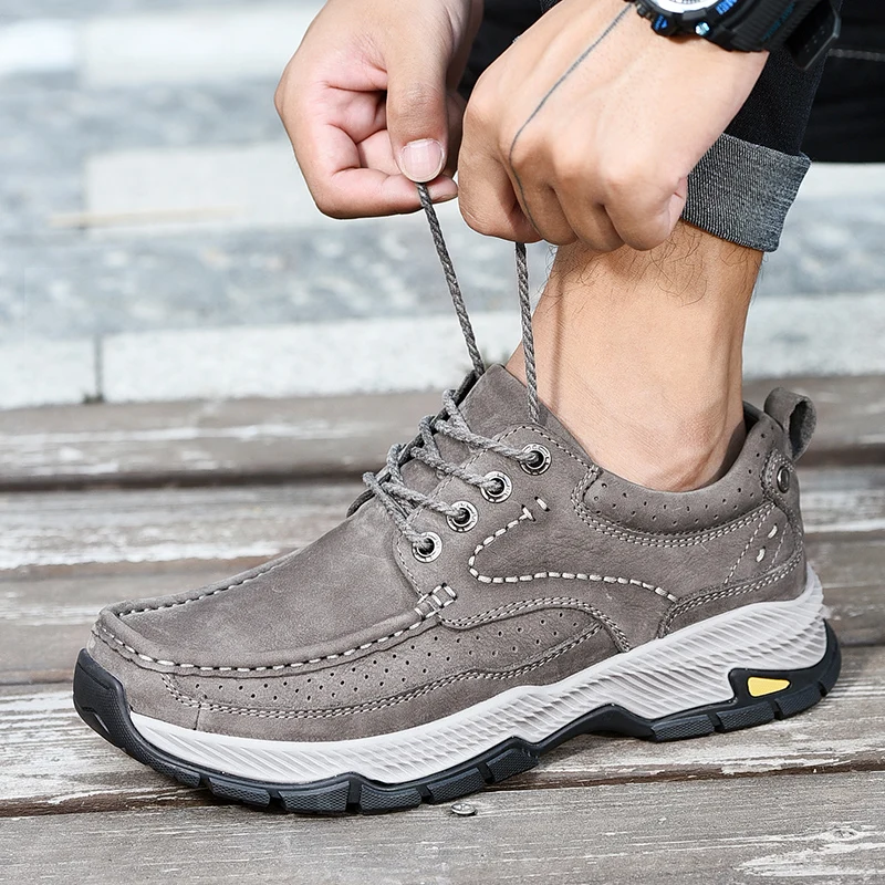 HIKEUP, zapatos de senderismo para hombre, tela de malla + cuero de ante, deportes al aire libre, zapatos masculinos para senderismo, escalada, senderismo, zapatillas de seguridad para hombre, duraderas y cómodas
