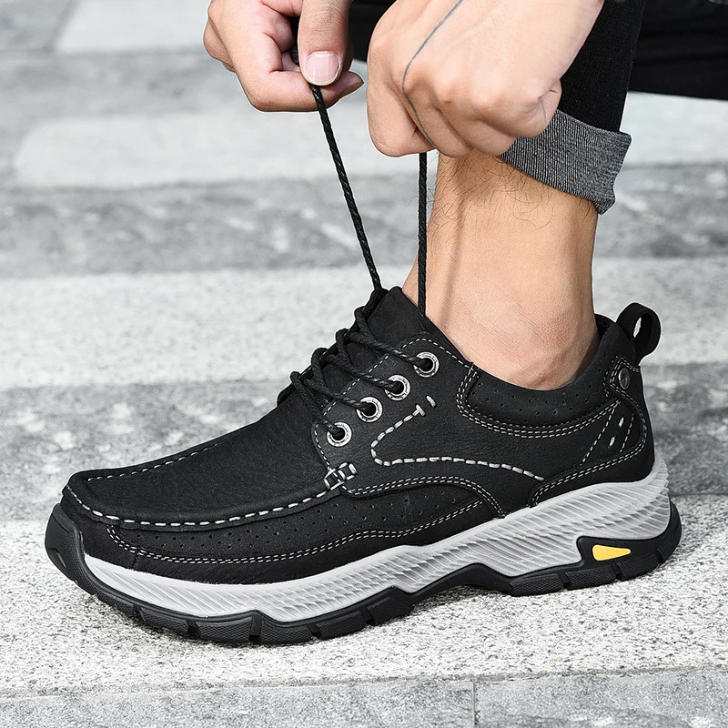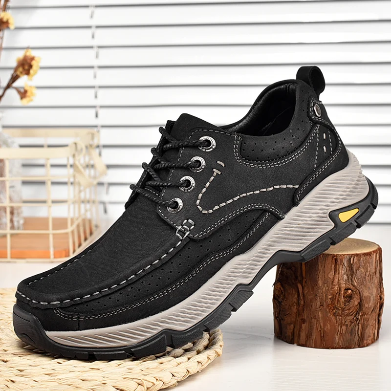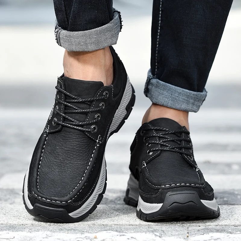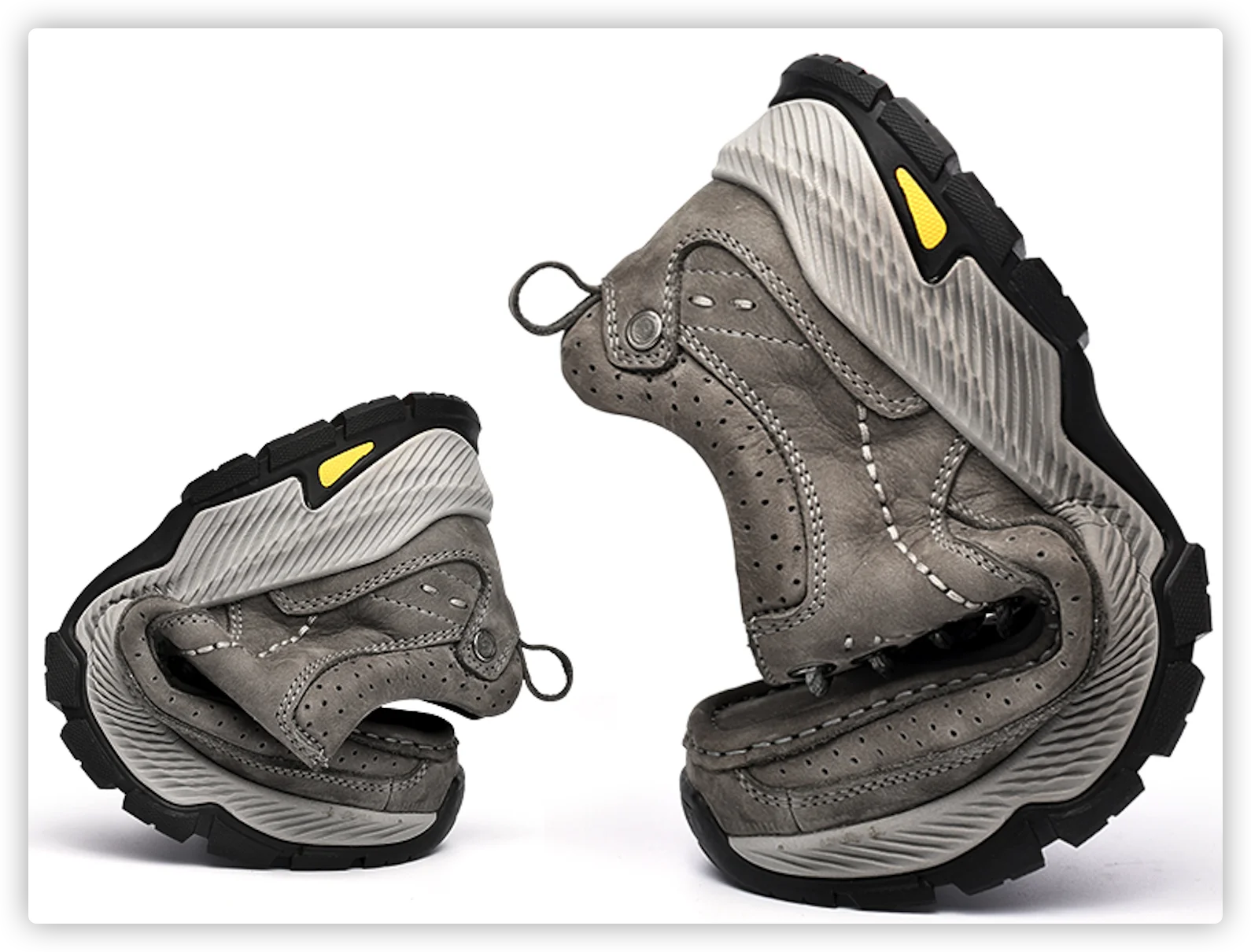 HIKEUP, zapatos de senderismo para hombre, tela de malla + cuero de ante, deportes al aire libre, zapatos masculinos para senderismo, escalada, senderismo, zapatillas de seguridad para hombre, duraderas y cómodas