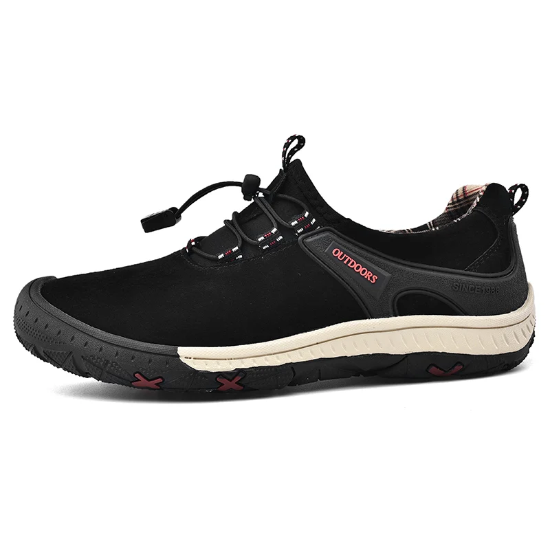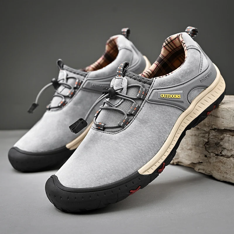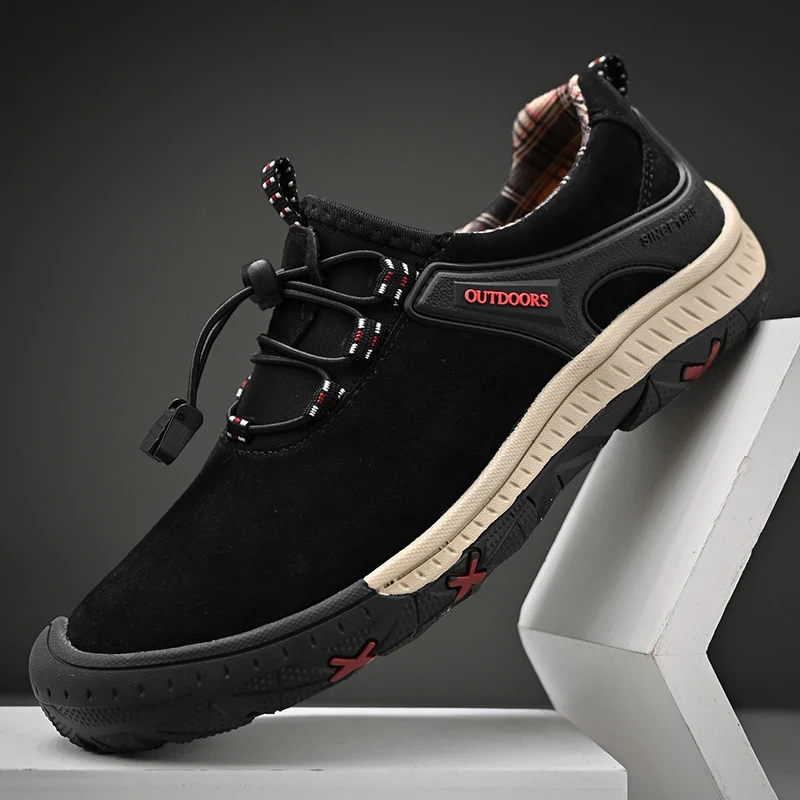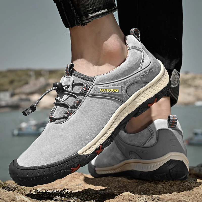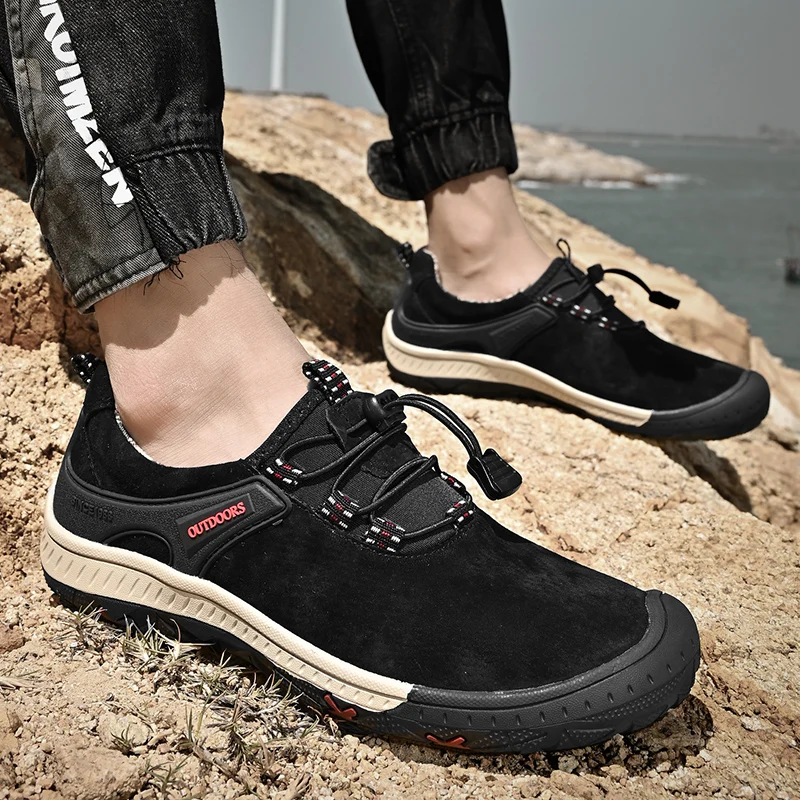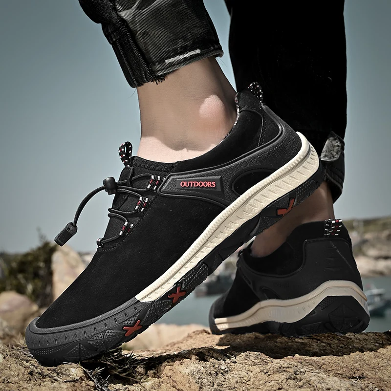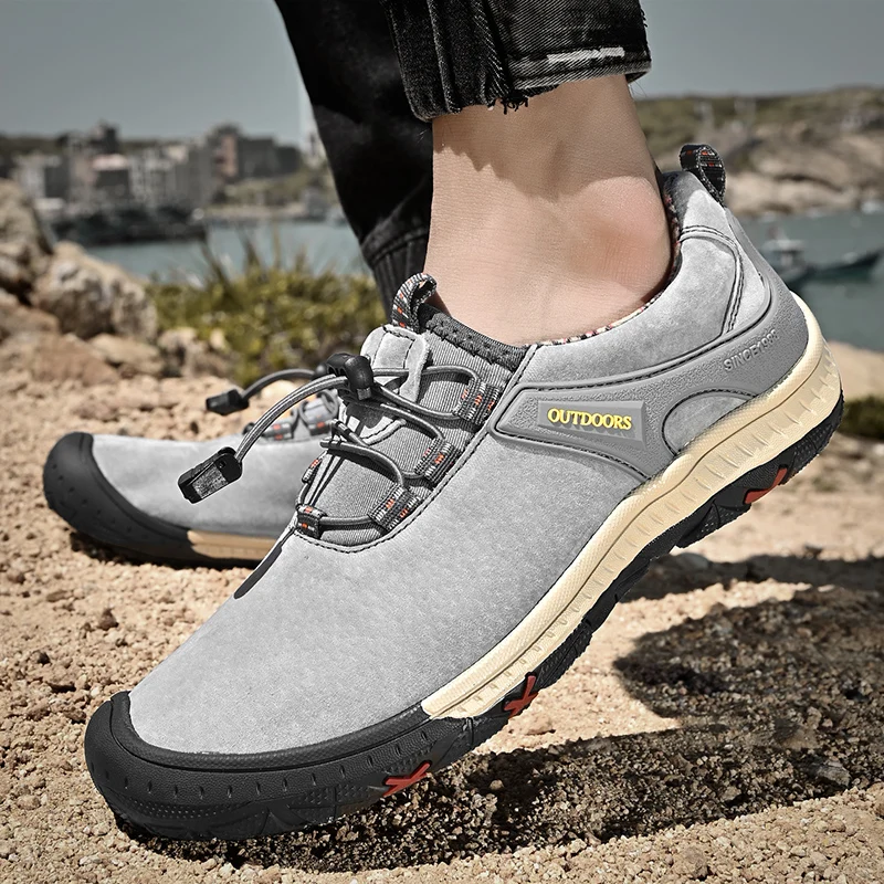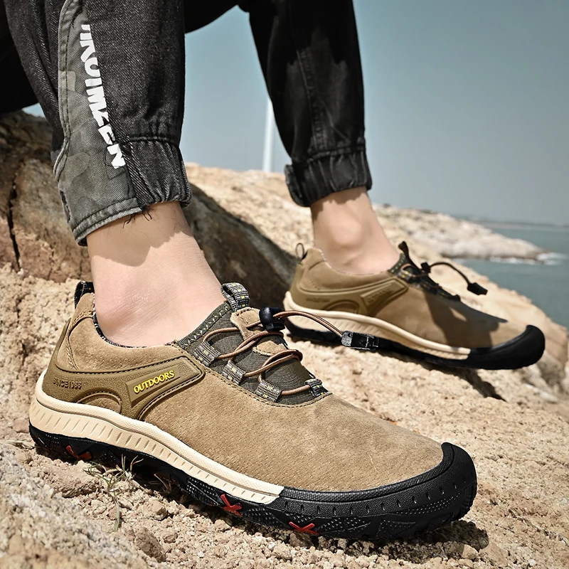 Zapatos de senderismo transpirables de malla HIKEUP para hombre, zapatos informales para exteriores, zapatos para caminar impermeables ligeros y cómodos de cuero