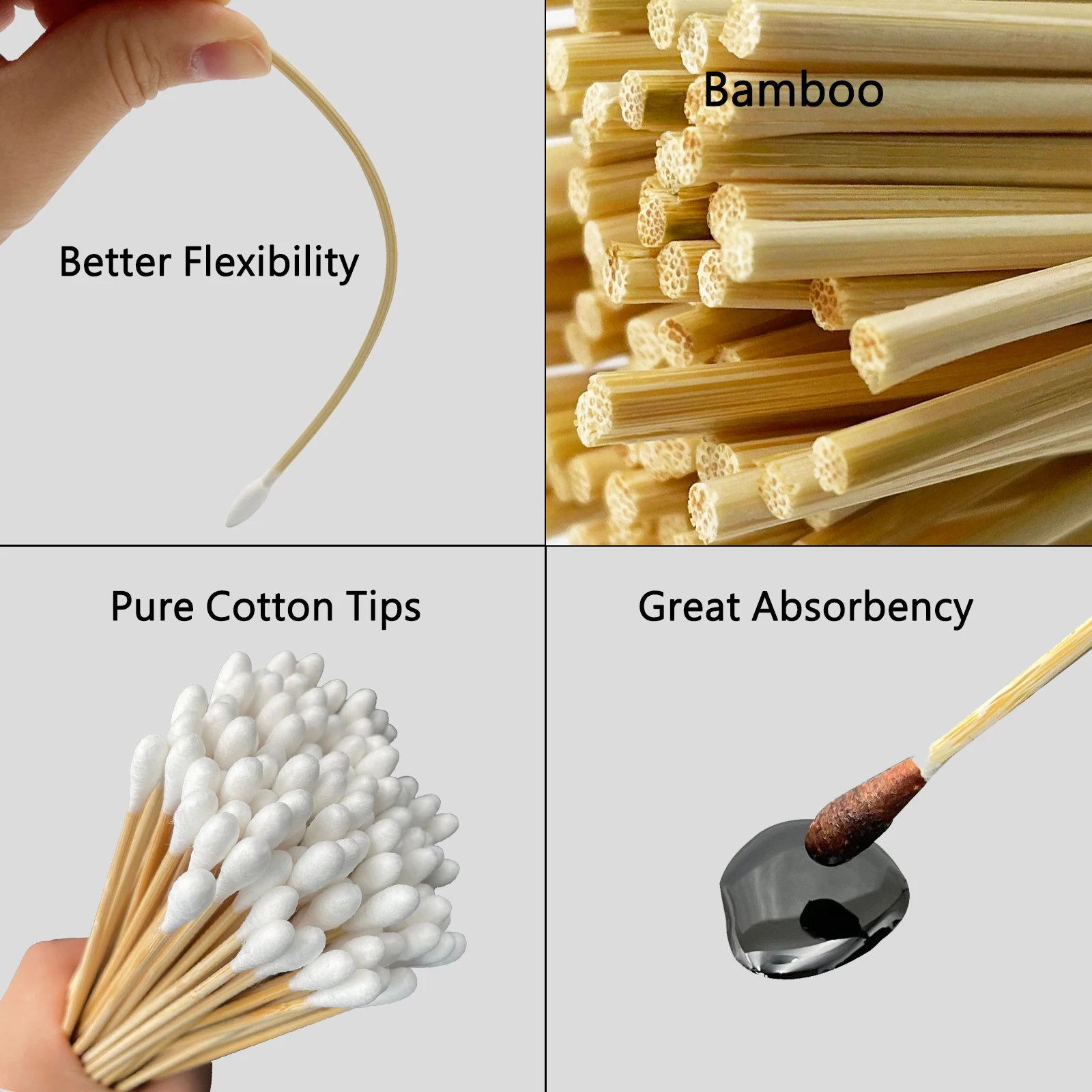 Los bastoncillos de algodón de bambú de 6 "de largo pueden alcanzar un barril más largo y limpiar áreas pequeñas en el arma de fuego.