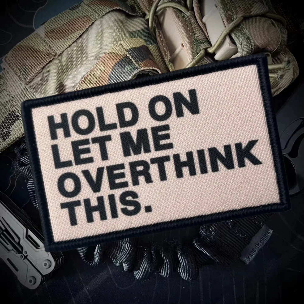 Hold On Let Me Overthink este parche táctico Airsoft, emblema de gancho y bucle impreso humorístico, insignia de moral militar, pegatinas para mochila
