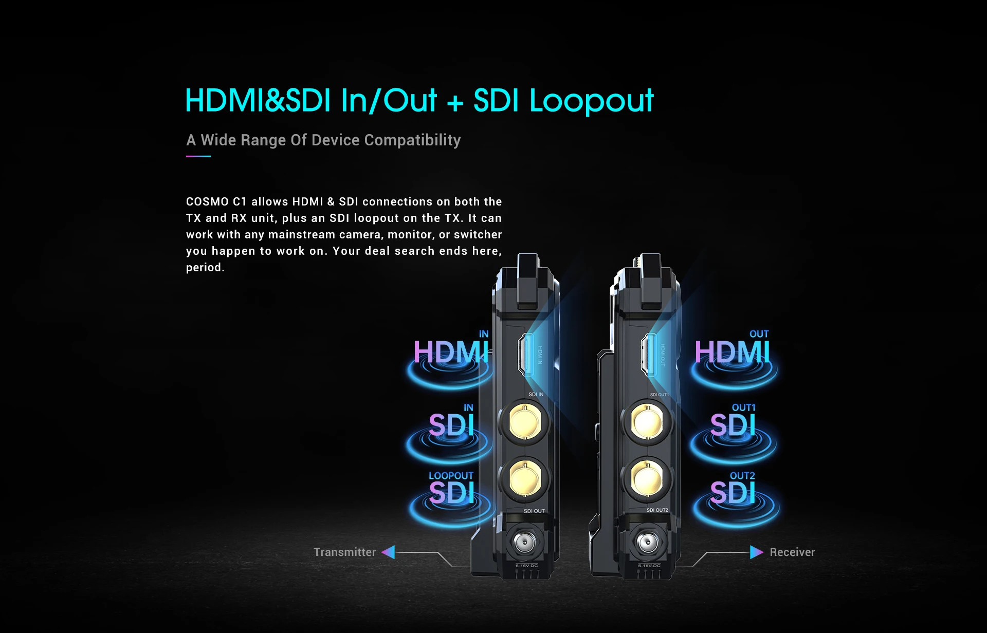✅Entrada SDI/HDMI, 2 * SDI + 1 * Salida HDMI, Salida de bucle SDI del transmisor