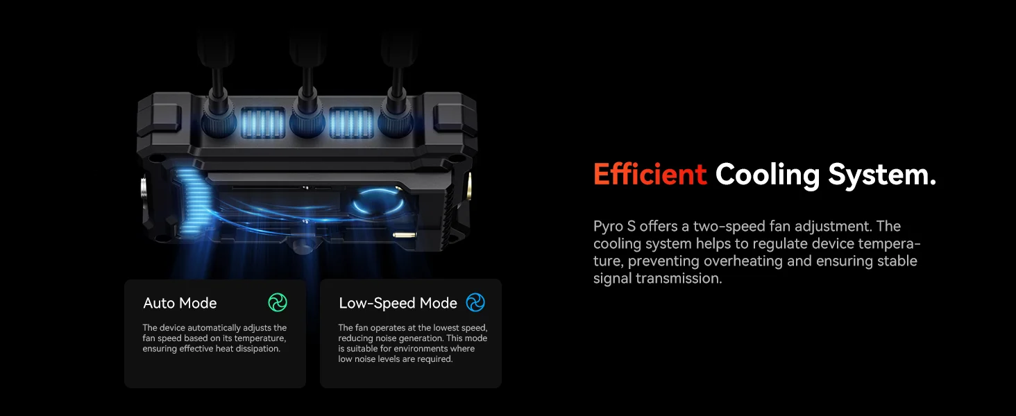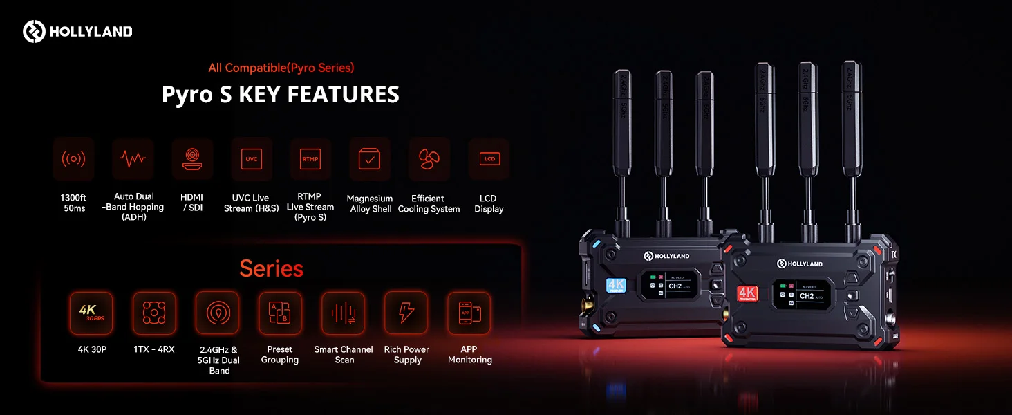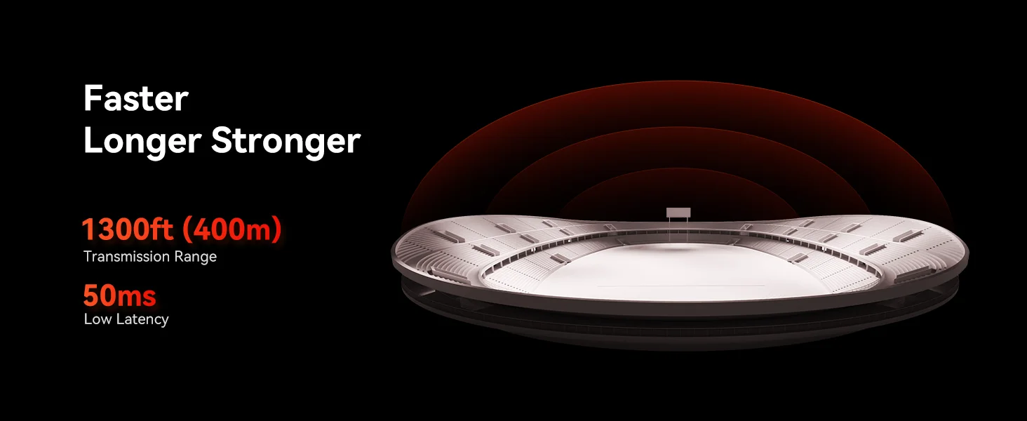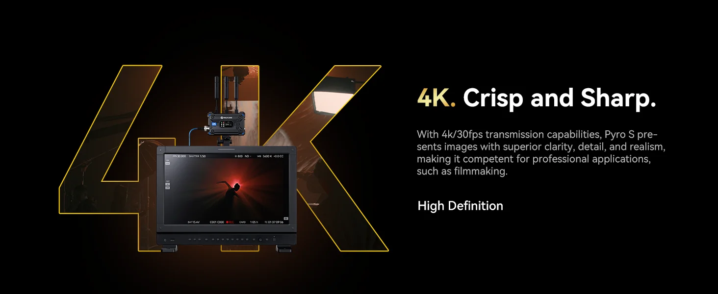 Pyro S garantiza que capture cada momento con claridad y precisión, gracias a sus capacidades avanzadas para transmitir vídeo sin problemas hasta 1400 pies (400 m) con una latencia increíblemente baja de solo 50 ms.Ideal para eventos en vivo y filmaciones complejas, Pyro S proporciona la confiabilidad y el rendimiento necesarios para ofrecer contenido de alta calidad, incluso en distancias extendidas.
