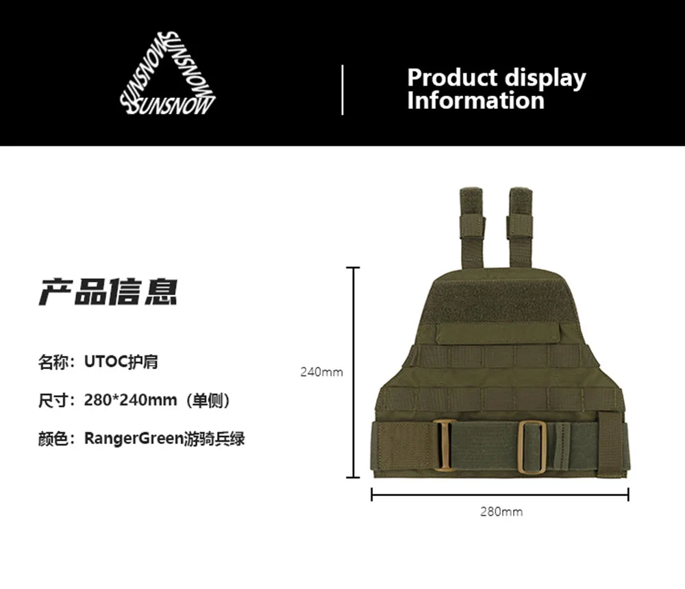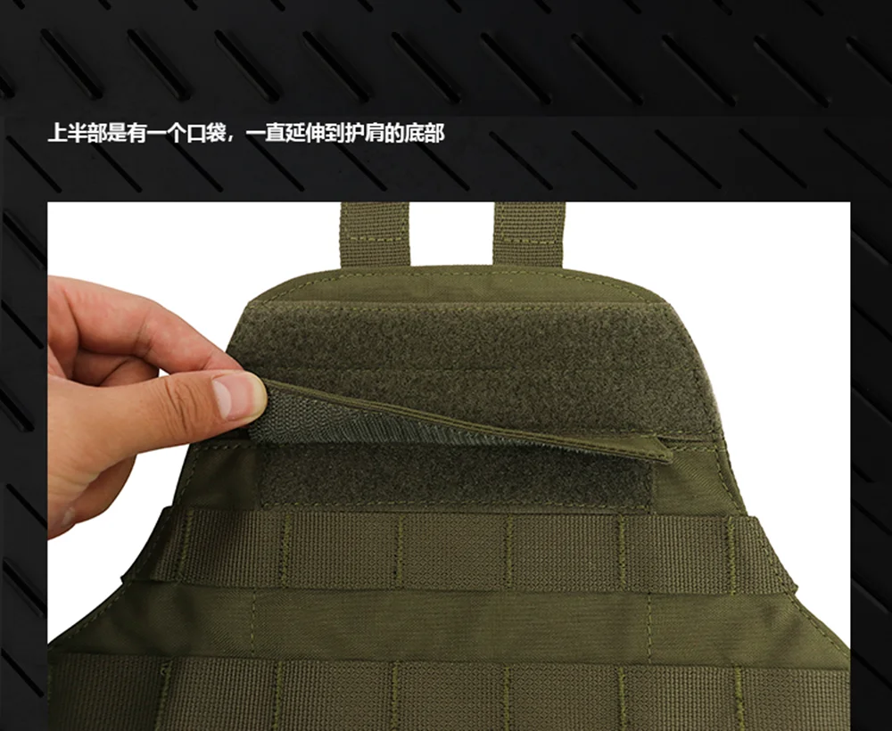 La mitad superior tiene un bolsillo que se extiende hasta la parte inferior del protector de hombro.